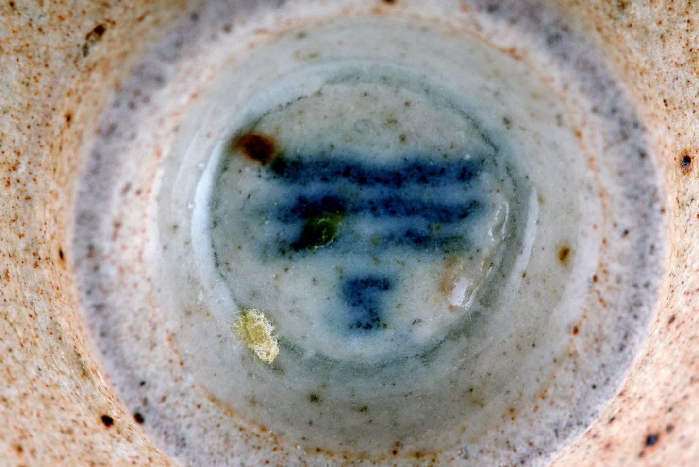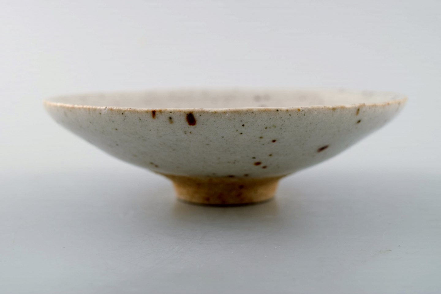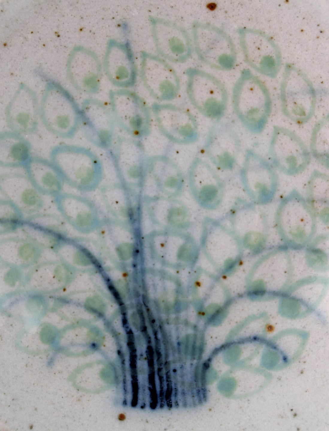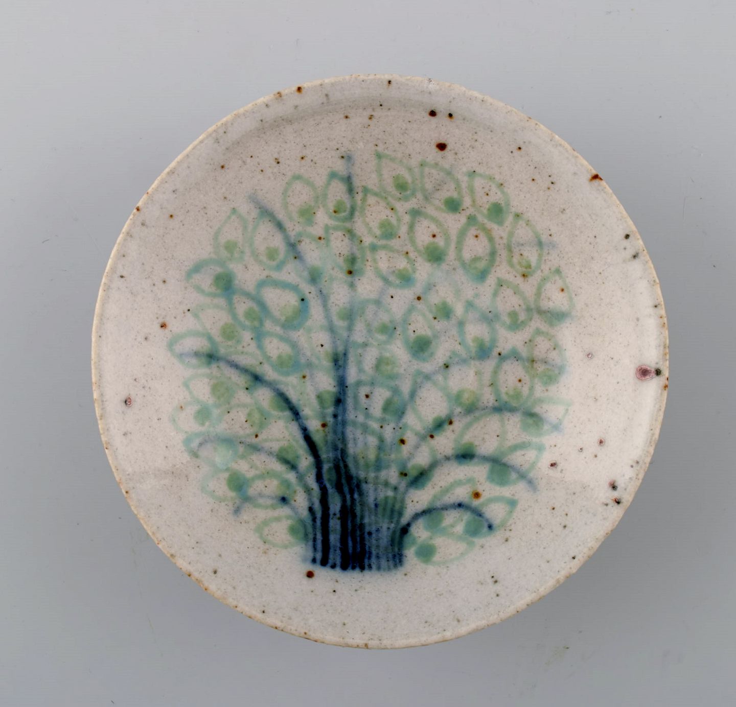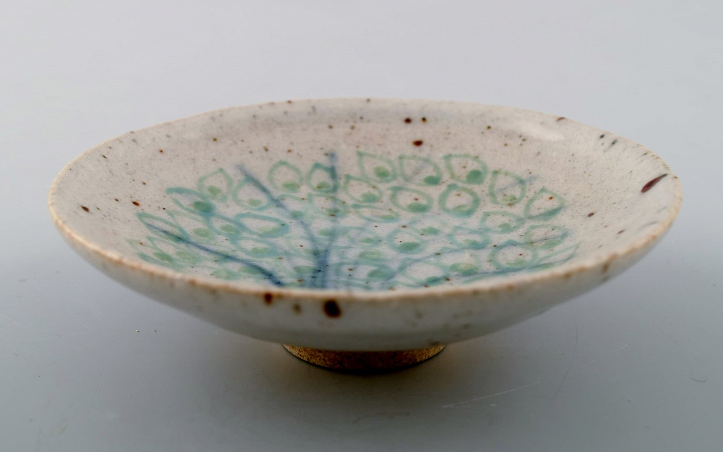 Snorre Stephensen for Royal Copenhagen: Small stoneware bowl decorated with tree in blue and green glaze, overlaid with transparent glaze.