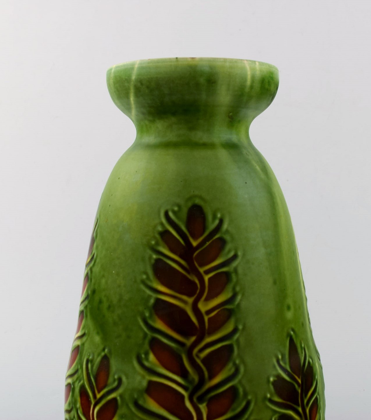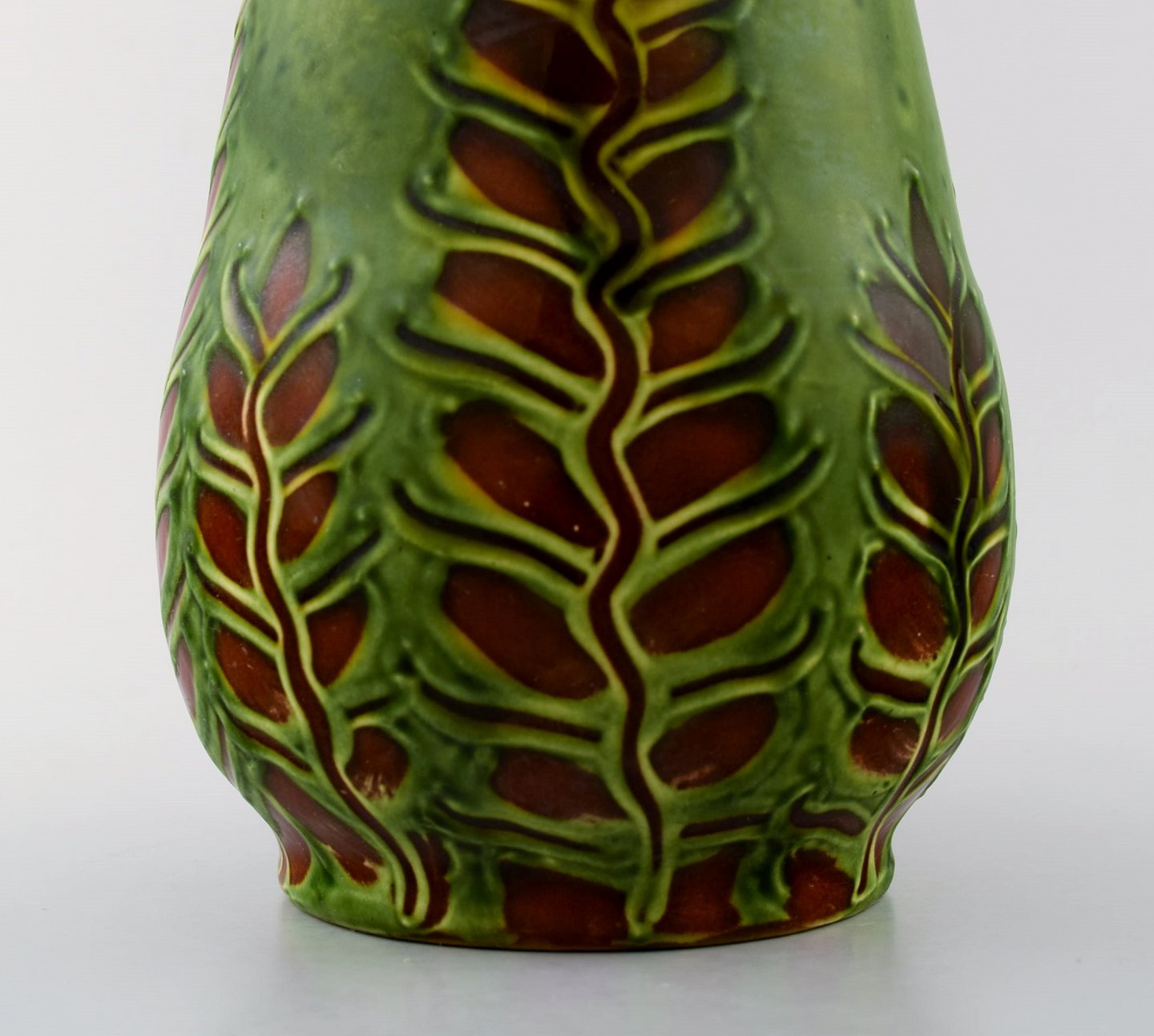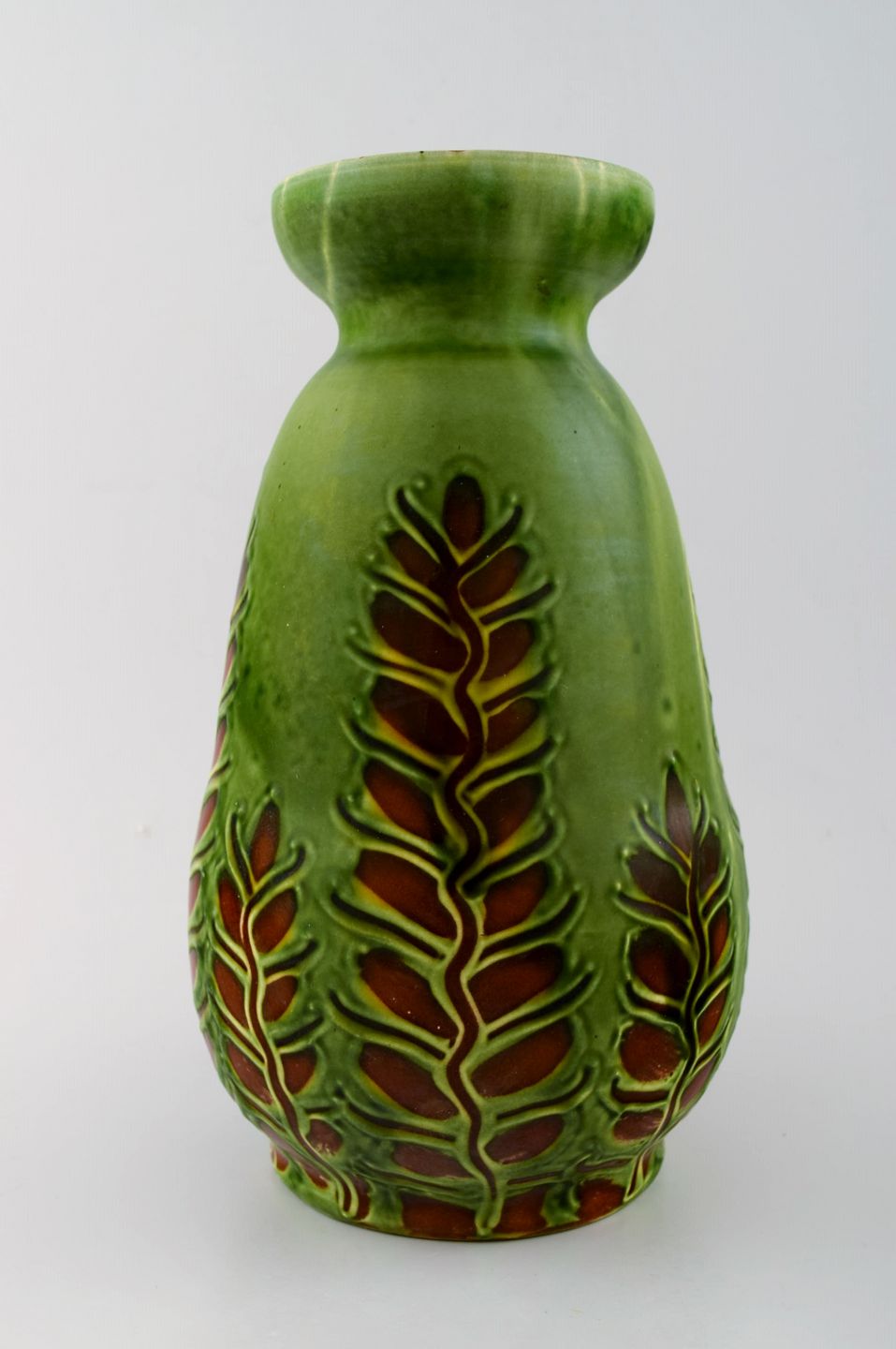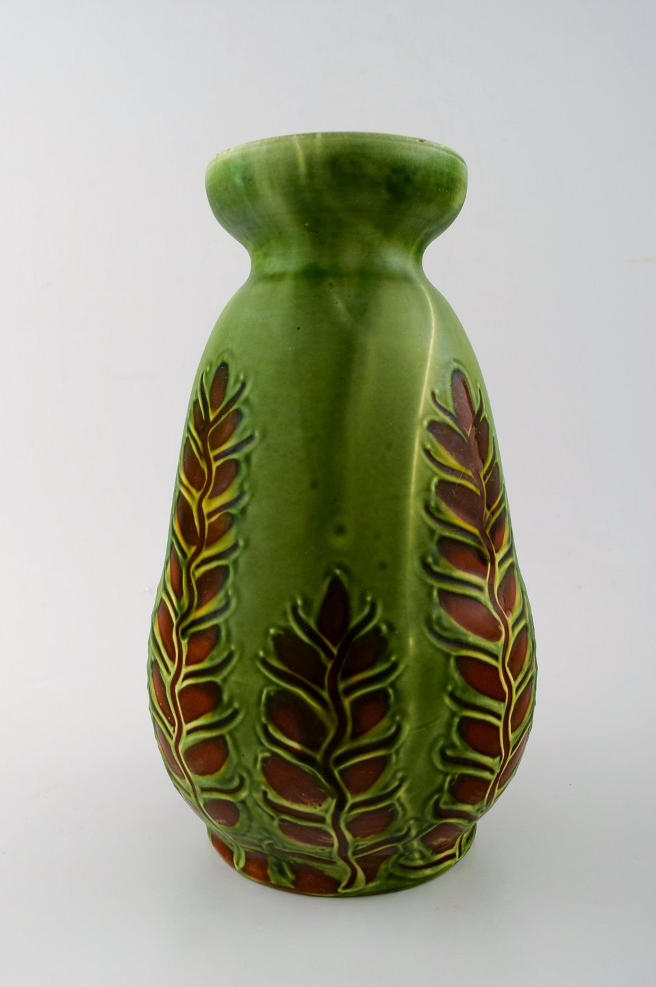 Kähler, HAK, stor glaseret stentøjsvase i moderne design. 1930/40´erne. Kohornsteknik. Stemplet. Måler : 23,5 cm. x 14 cm. I perfekt stand.