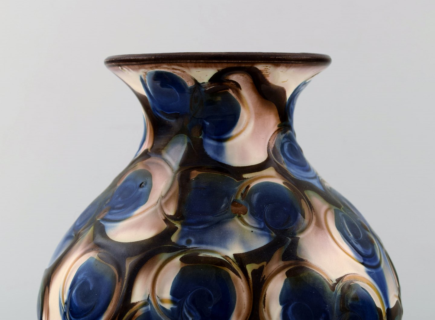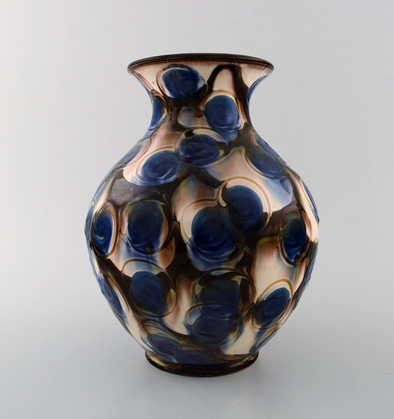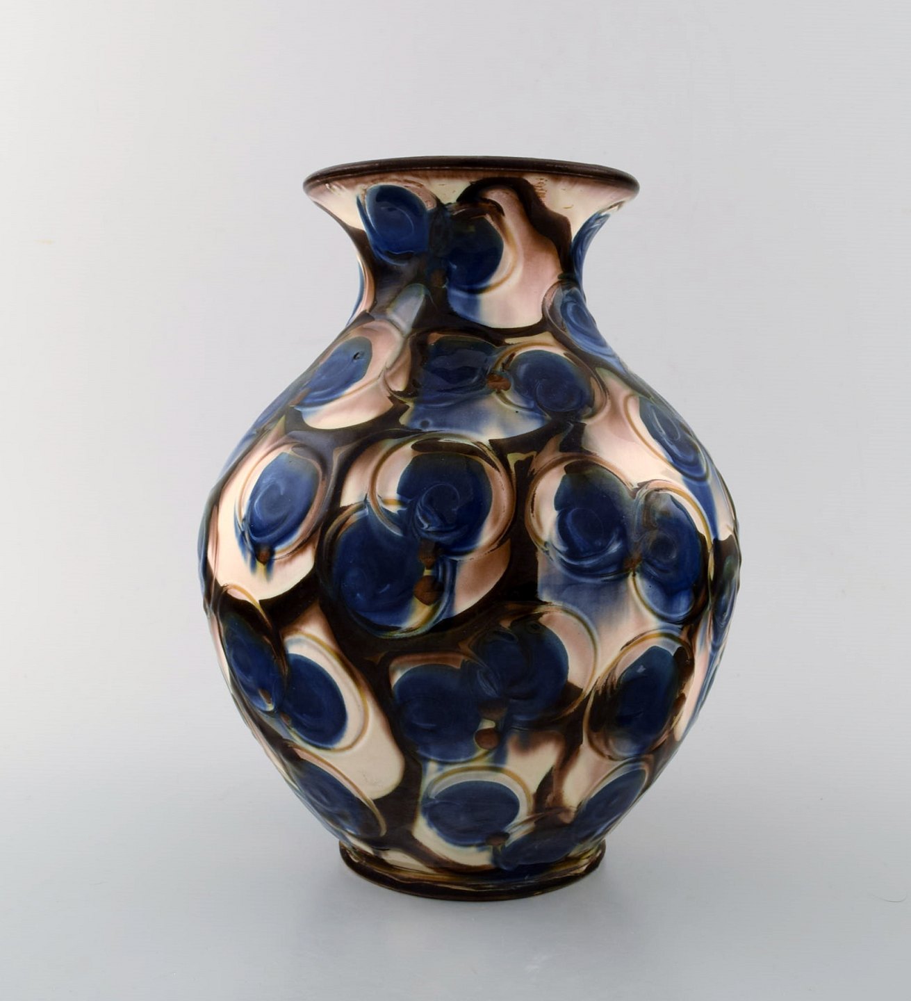Kähler, HAK, glaseret stentøjsvase i moderne design. 1930/40´erne. Kohornsteknik. Stemplet. Måler : 21 cm. x 17 cm. I perfekt stand.