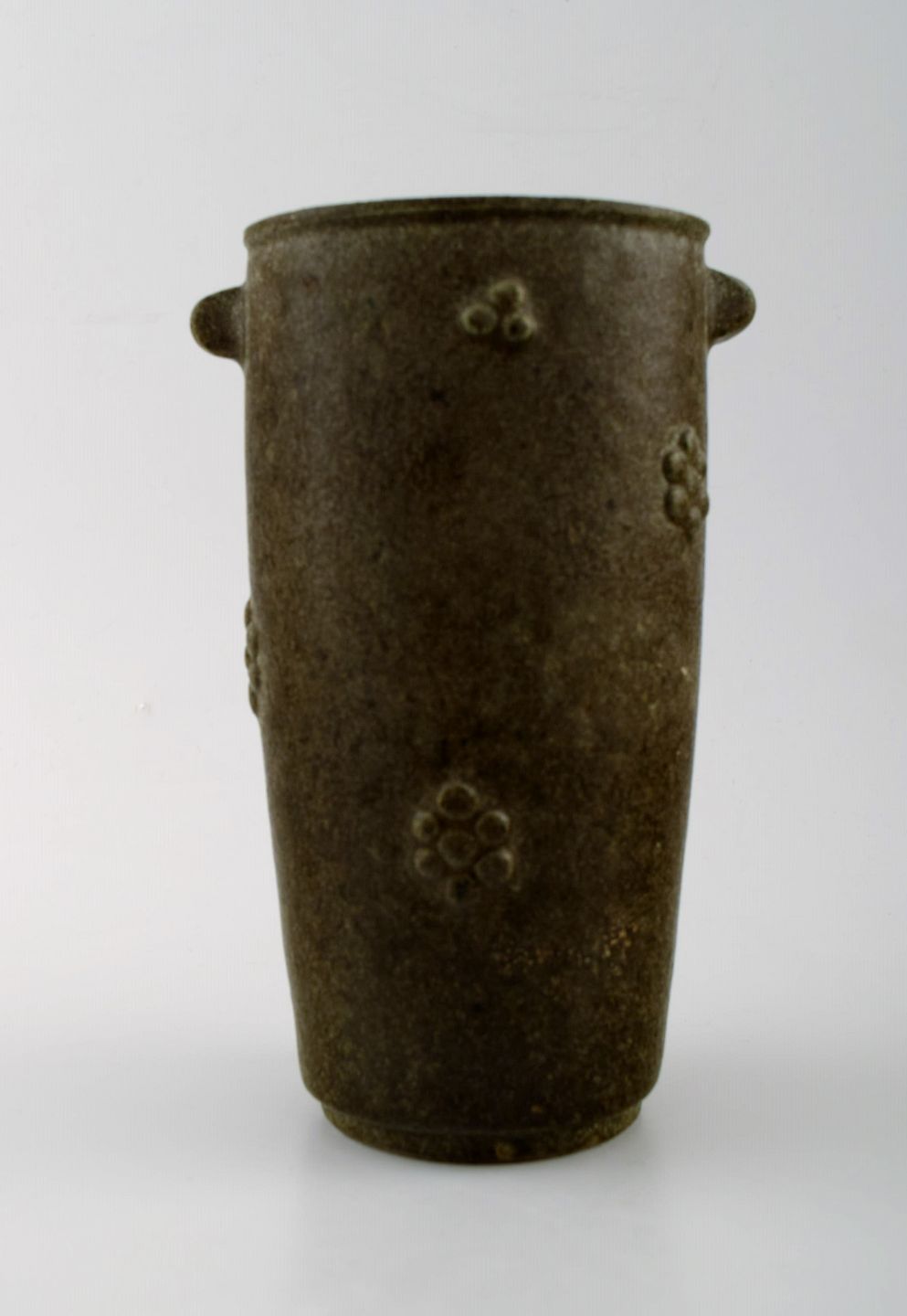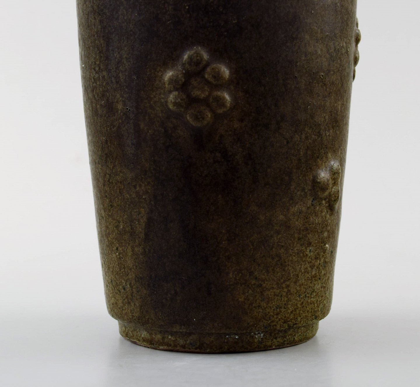 Arne Bang. Pottery Vase. Stamped. Beautiful glaze in brownish shades. In perfect condition. Measures: 16.5 cm. x 8 cm.