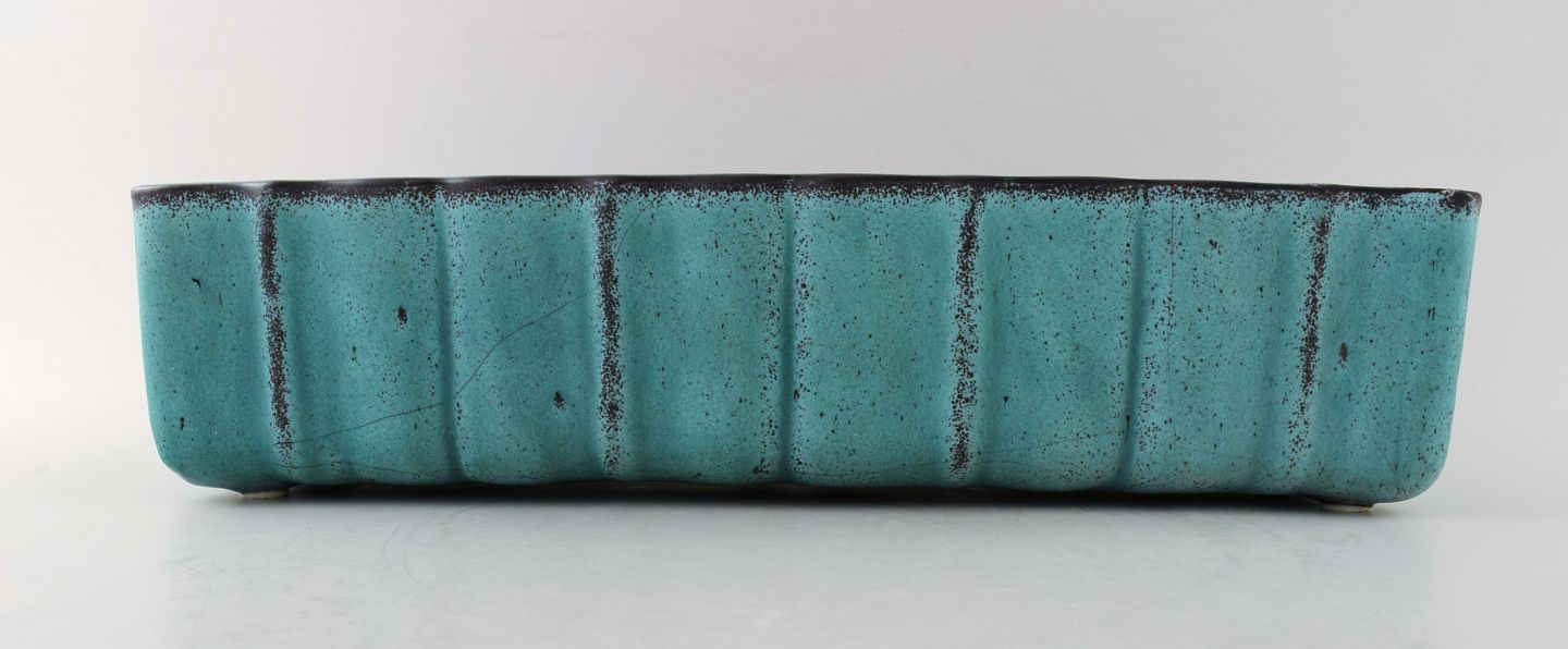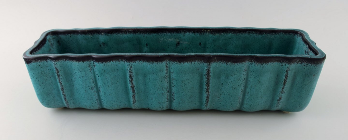 Svend Hammershøi for Kähler. Urtepotteskjuler med grønsort glasur. Signeret "HAK". 1940´erne. Længde 39,5 cm. x 10 cm. 9 cm. I perfekt stand.