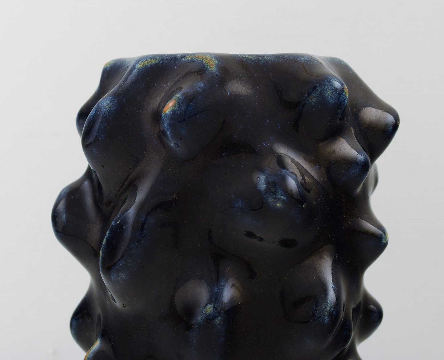 Decorated with mussel blue glaze. Very beautiful glaze, very rare to find.