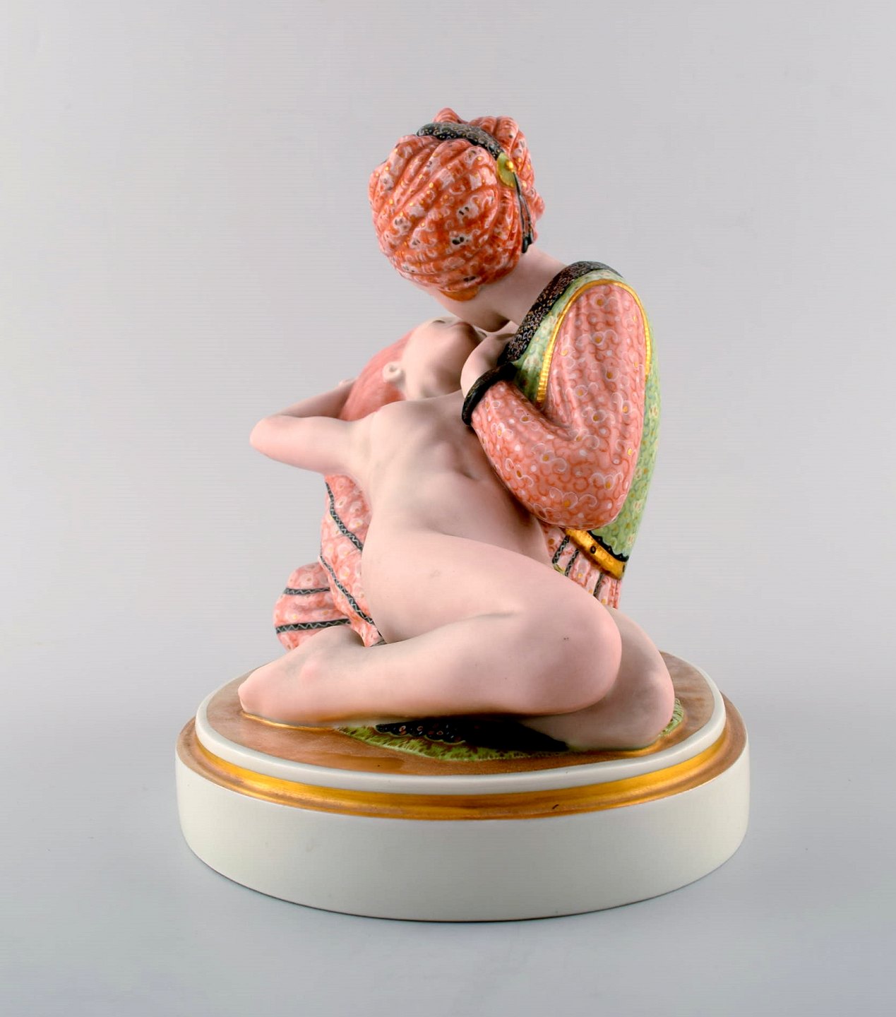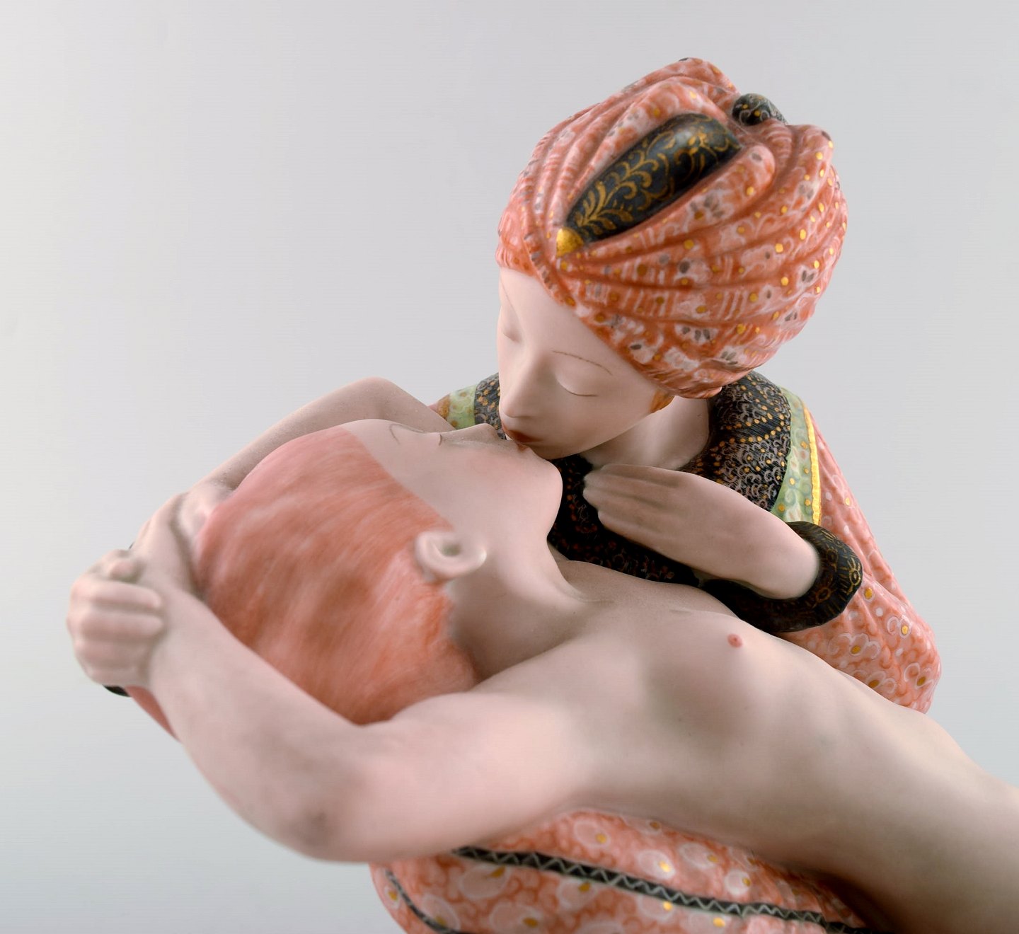 Royal Copenhagen. Gerhard Henning: "Adventure III" figure group of porcelain, decorated in overglaze colors and gold.