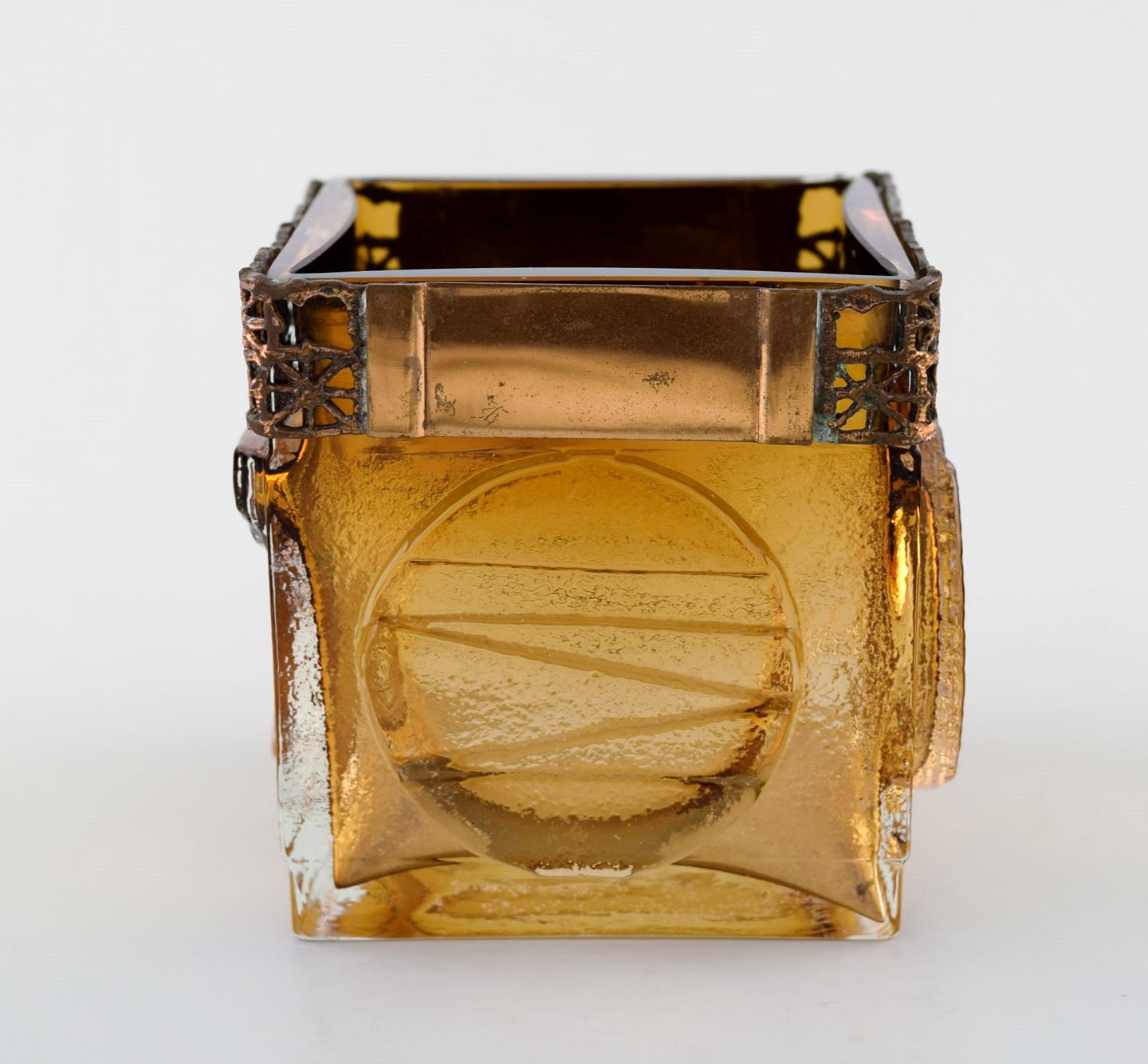 Finsk 1960'erne kunstglas Vase af Pentti Sarpaneva for Oy Kumela / Turun Hopeya, Finland. Måler: 8 cm. X 7,5 cm. I perfekt stand. Signeret.