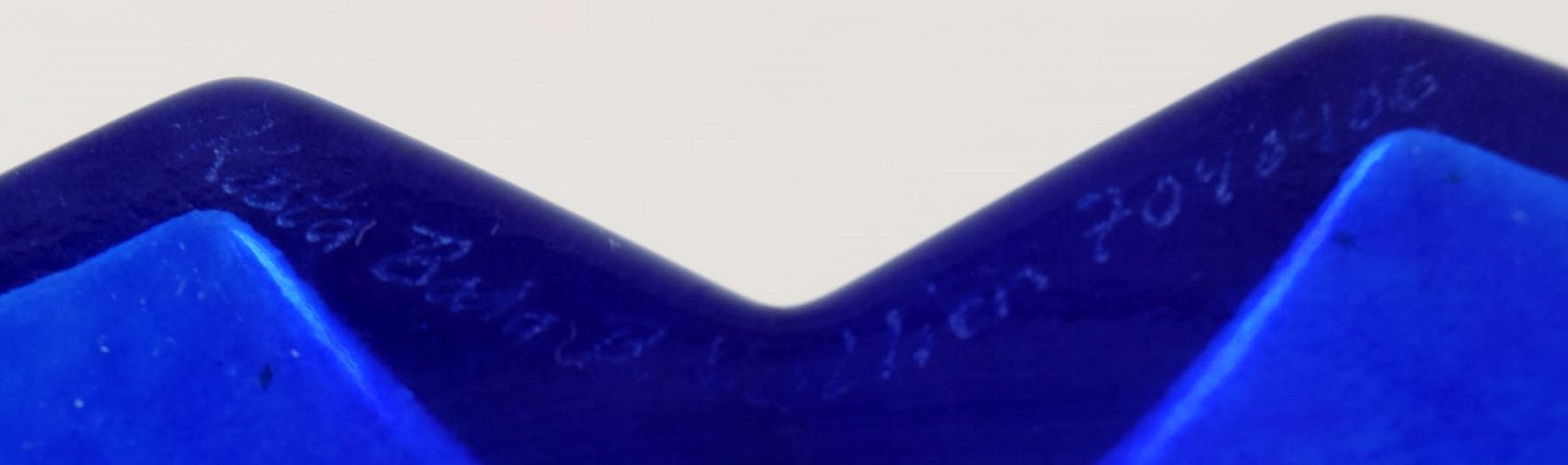Bertil Vallien, Kosta Boda, serien Mosaik, vase af blåt kunstglas. Måler : 25 cm. x 9 cm. I perfekt stand.