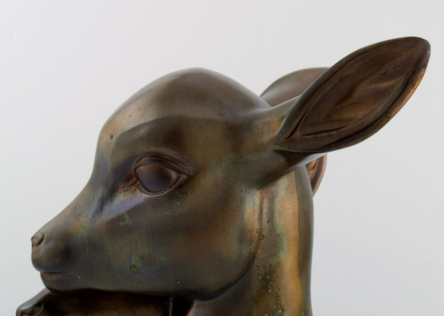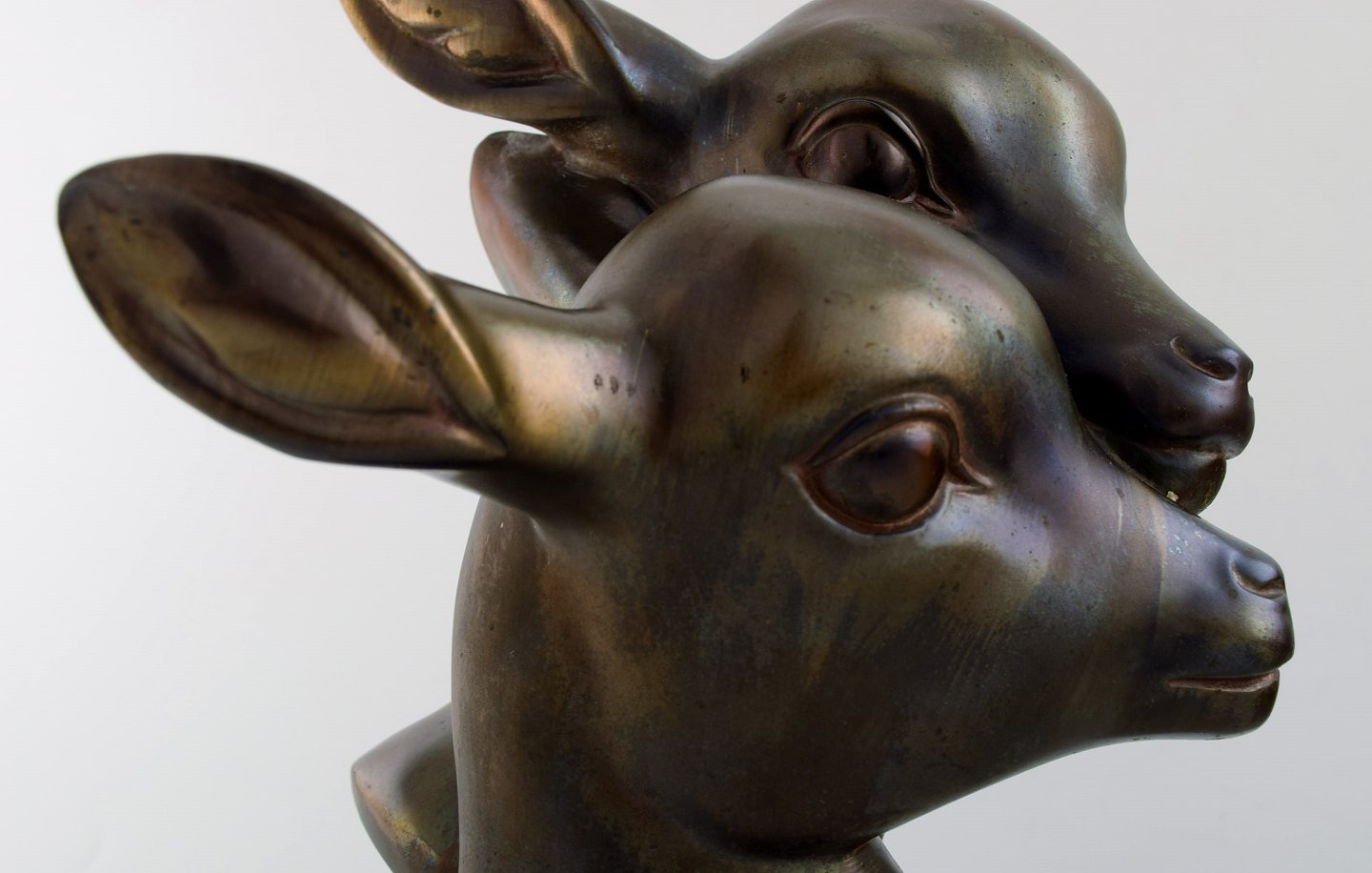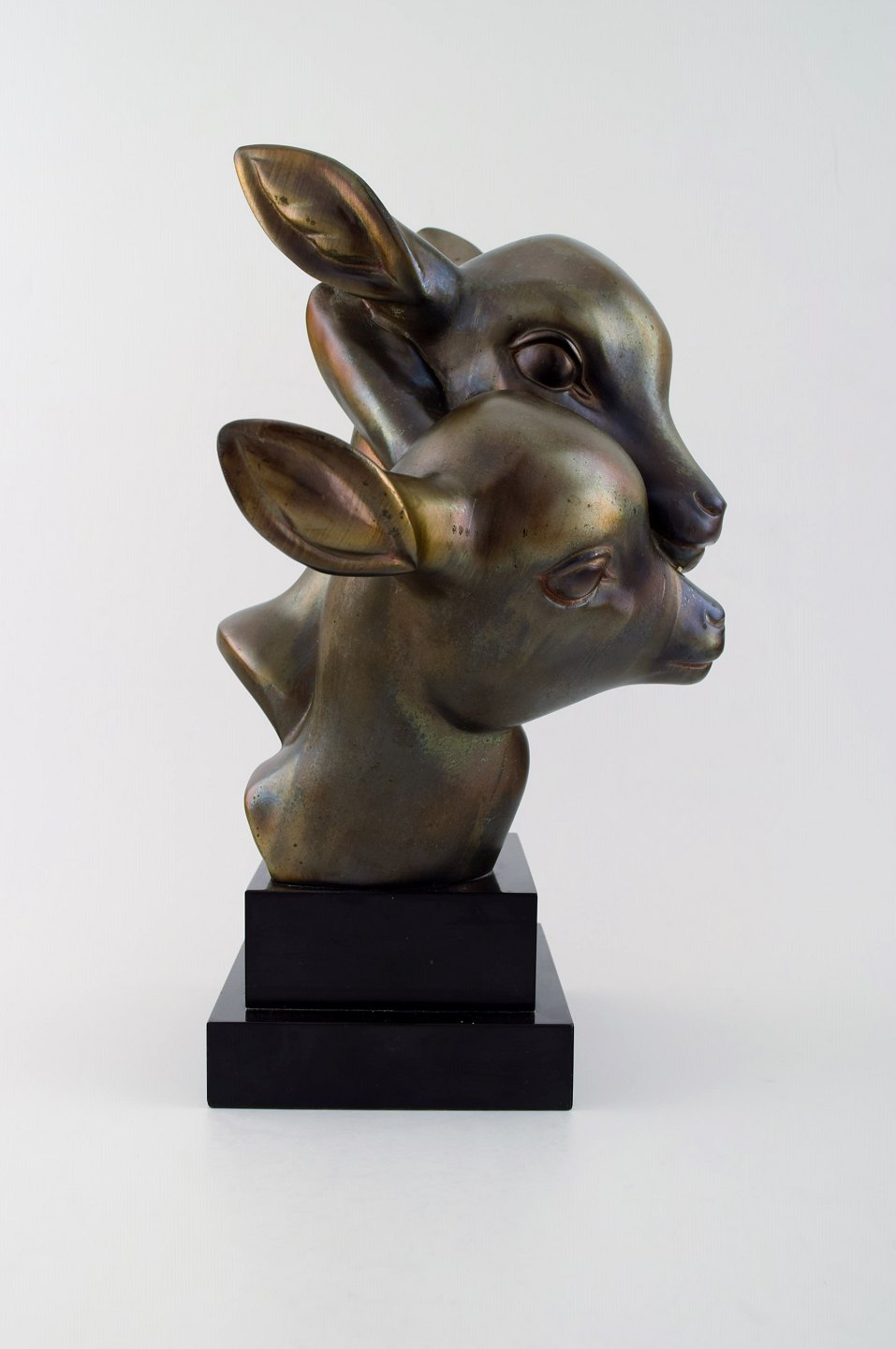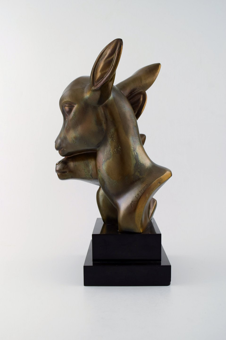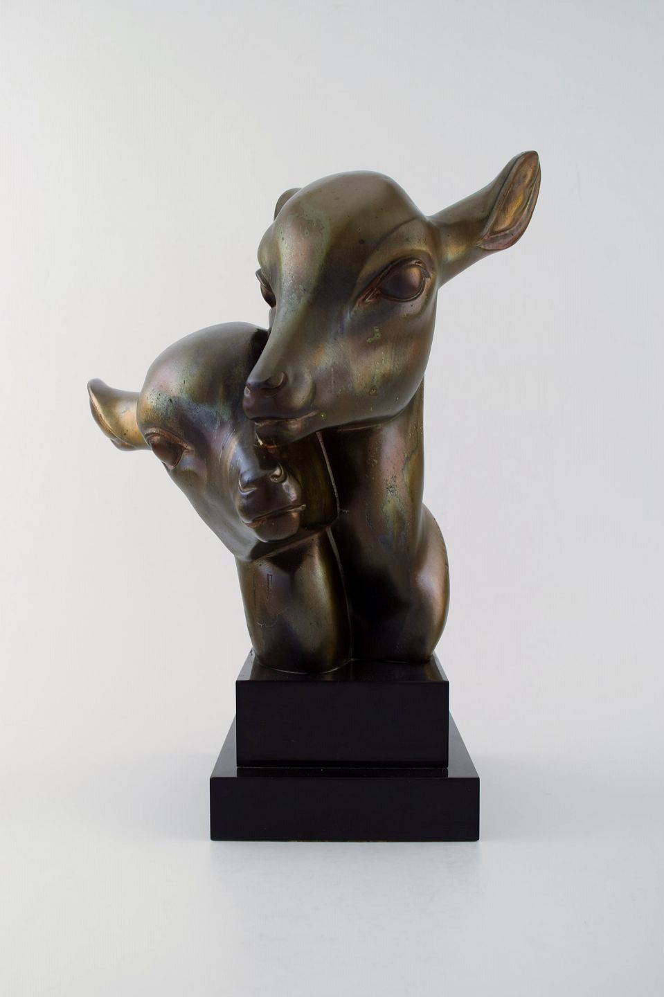M. LEDUCQ (1879-1955) fransk skulptør. Art deco Bronzefigur forestillende to hjortekid. I flot stand. Signeret. Måler : 30 cm. x 24 cm.