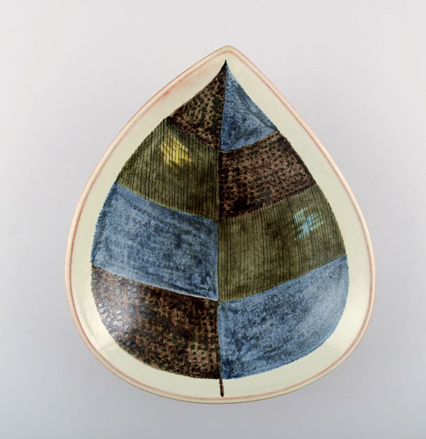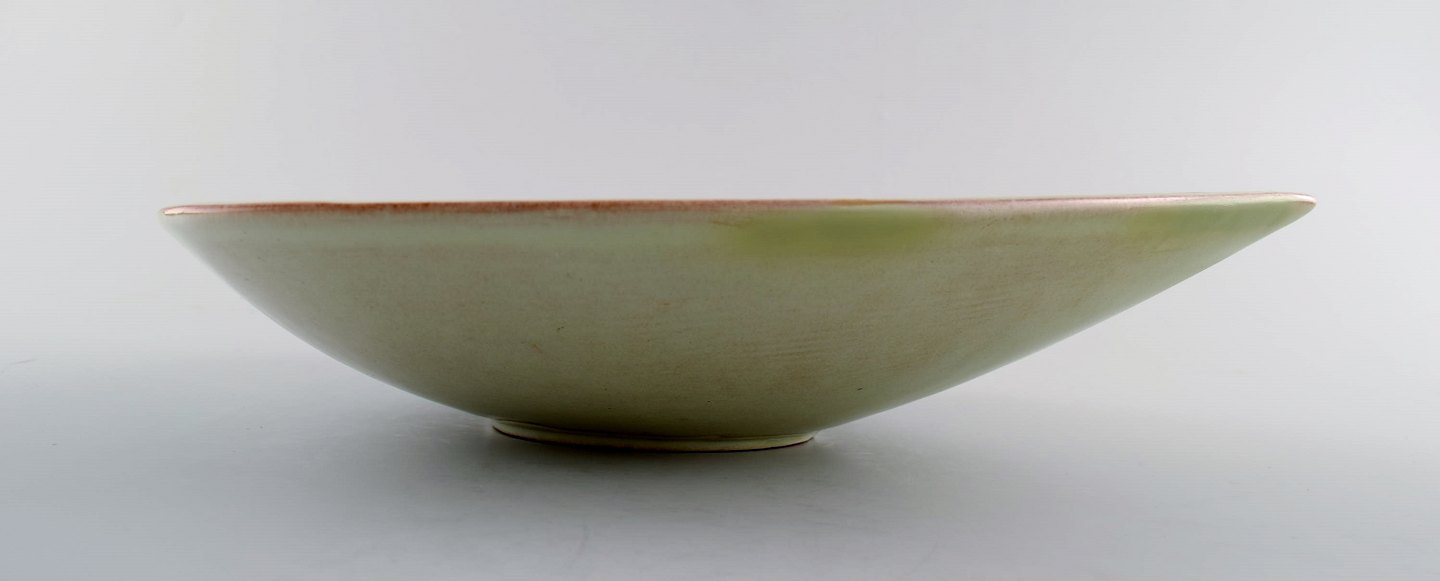 Carl-Harry Stålhane, Rörstrand / Rorstrand, large leaf-shaped bowl in stoneware. Beautiful glaze. Length 26.5 cm. Width 22 cm. Height 6 cm. In perfect condition, 1st. factory quality.