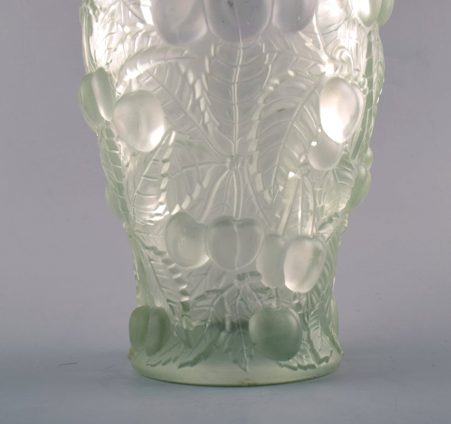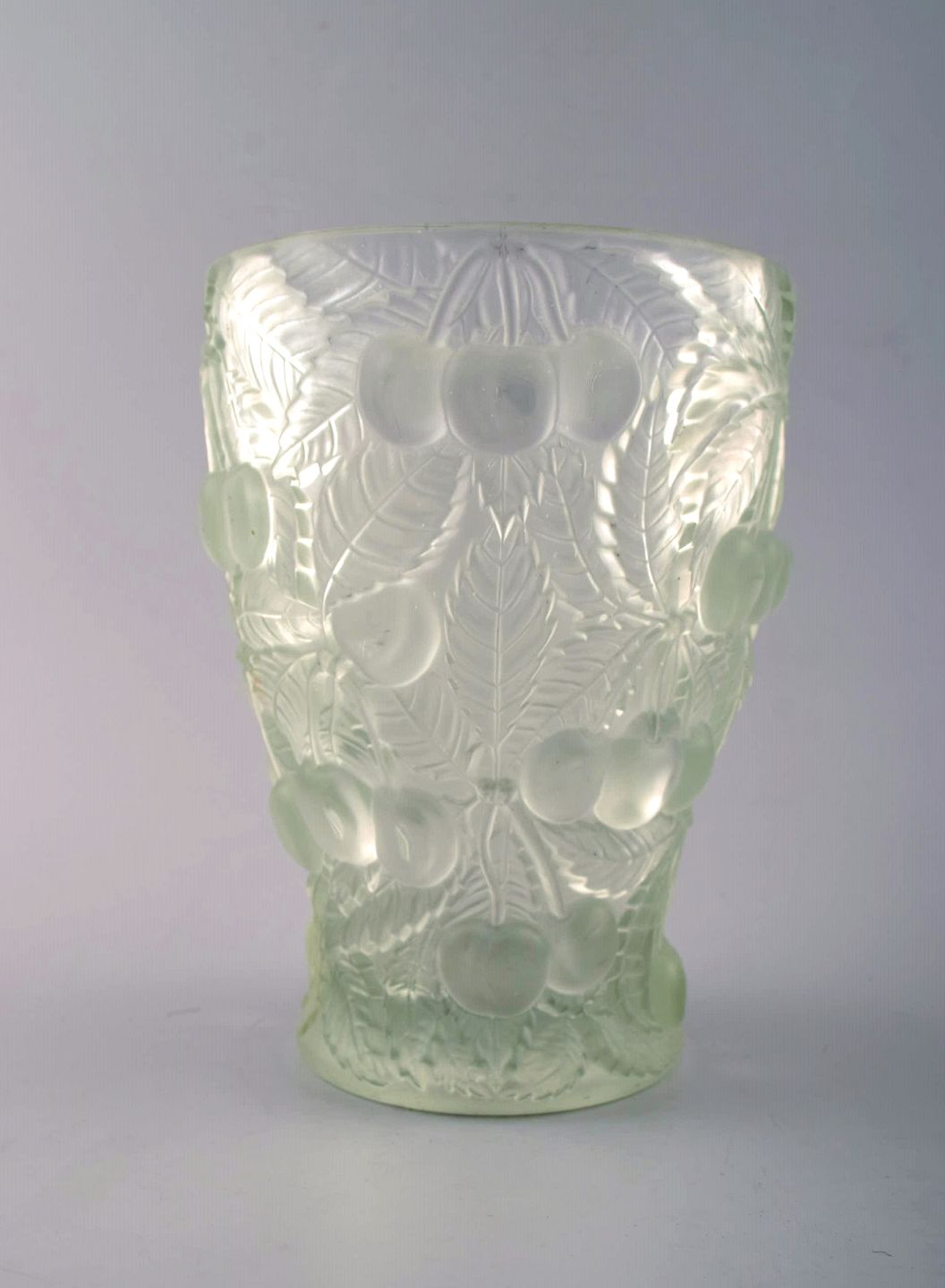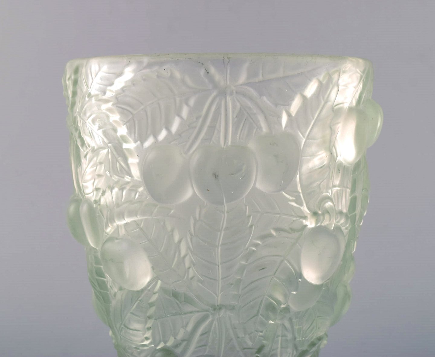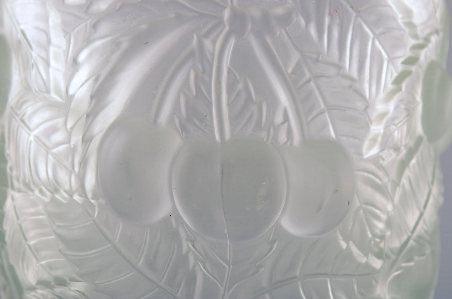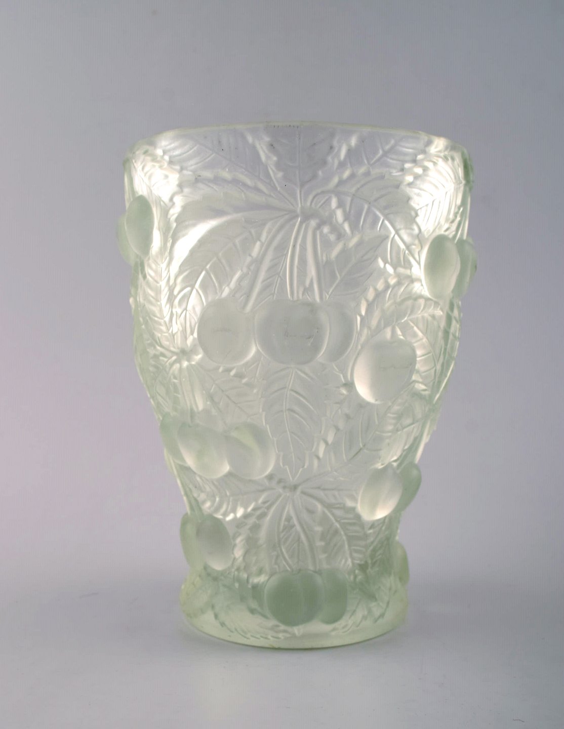 Lalique stil kunstglas vase i klart glas med kirsebær i relief.