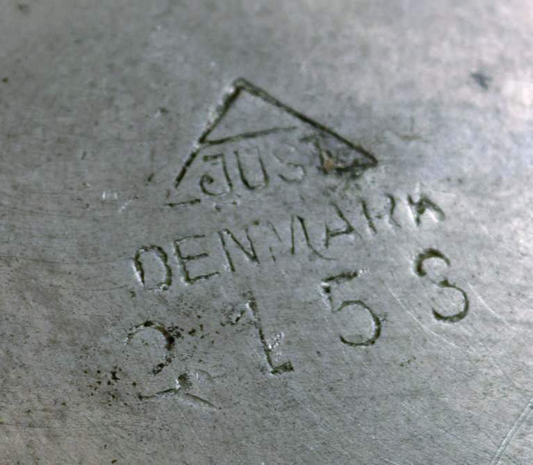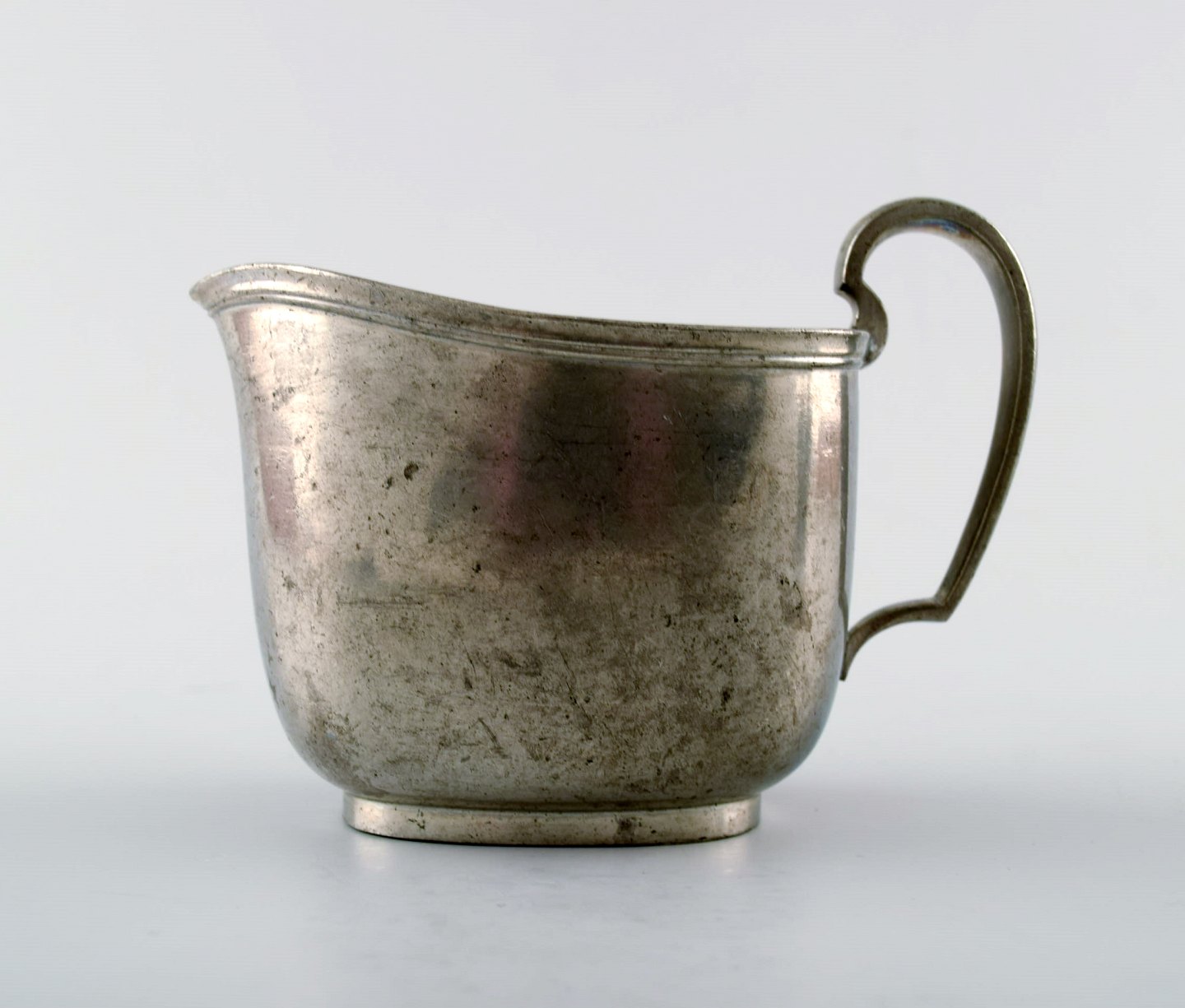 Just Andersen art deco, fløde/sukkersæt og skål med hank i tin.