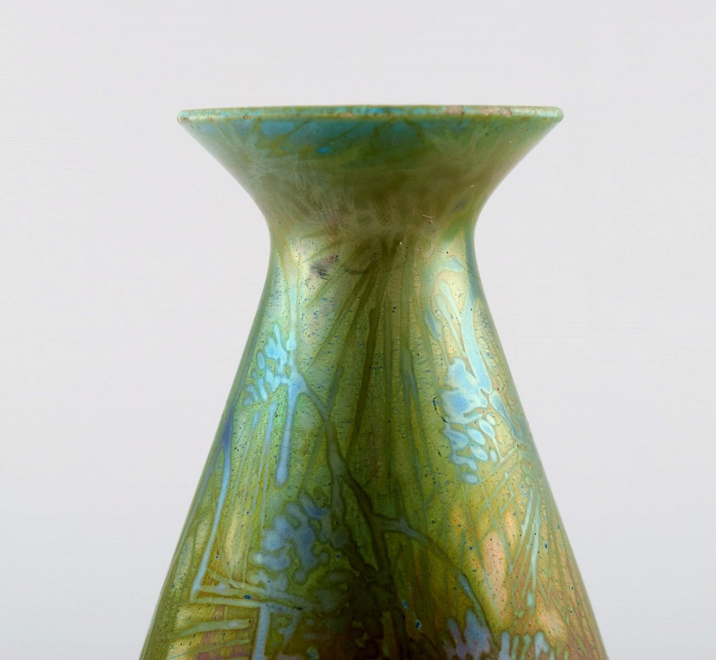Clément Massier for Juan Golf, fransk vase i keramik, dekoreret med blomster i lustre glasur. Tidligt 1900 tallet. I flot stand. 11.5 cm. høj. 8,5 cm. bred. Signeret.