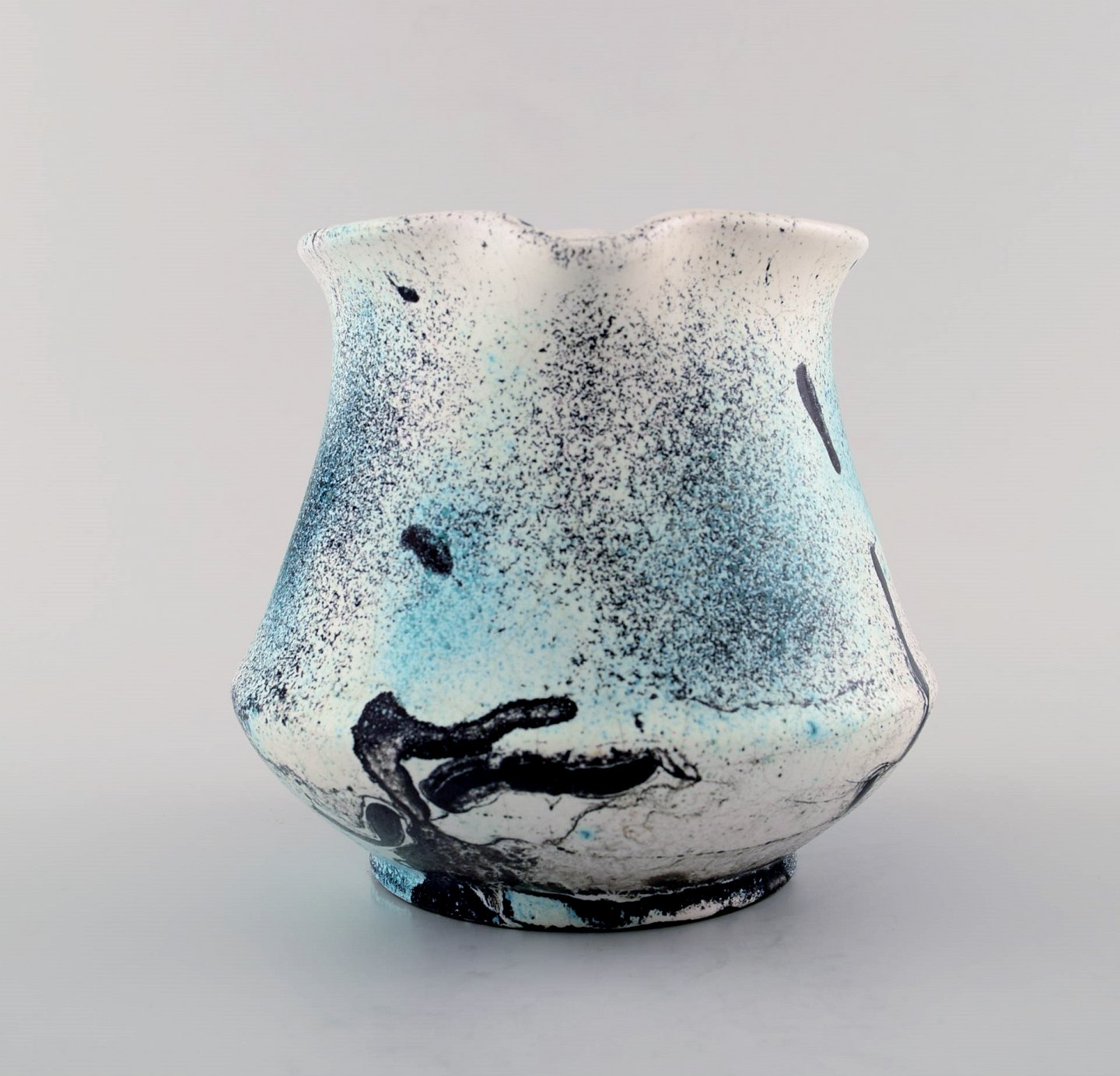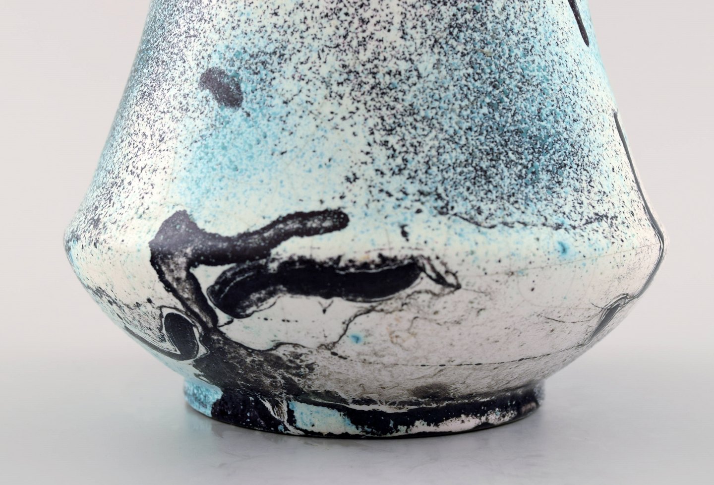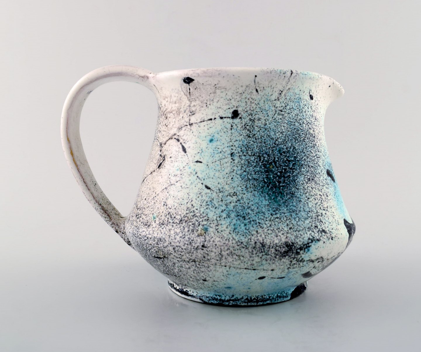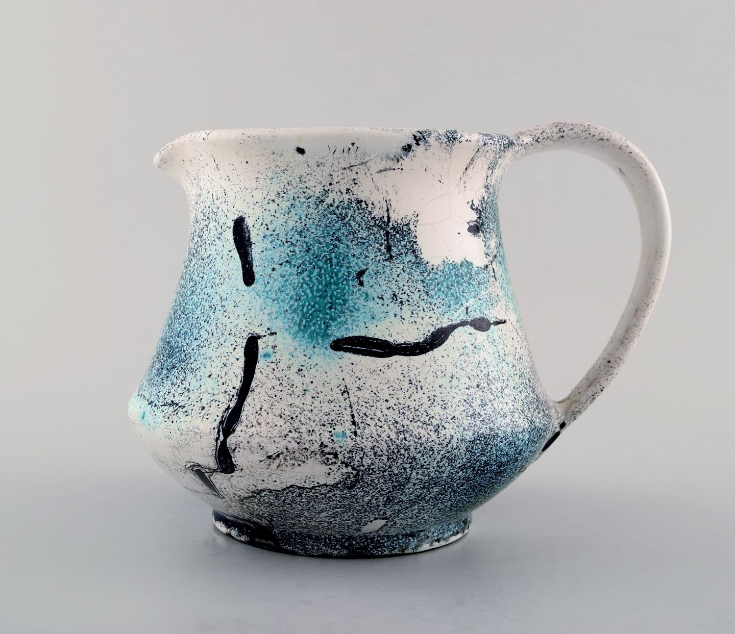 Jens Thirslund (1892-1942) Kähler pitcher decorated with greenish glaze. Stamped HAK for Herman A. Kähler. Denmark 1930 s. In perfect condition. Measures 16.5 cm. incl. hank x 12 cm. high.