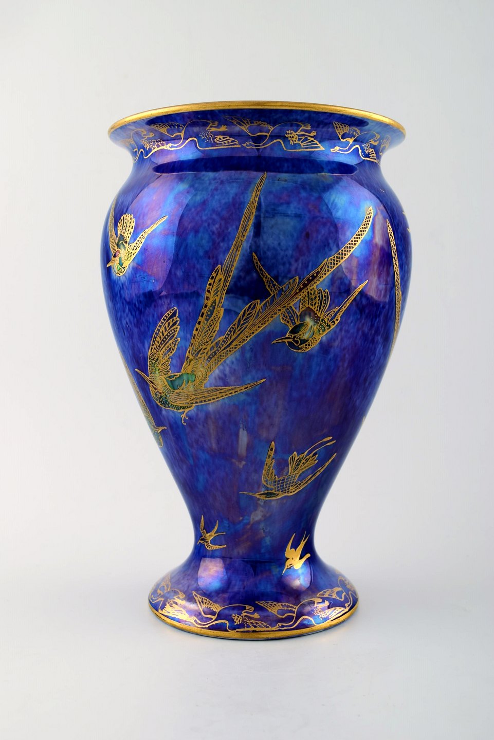 Wedgwood "Fairy" vase in luster glaze, decorated with birds. Measures: 22 cm. X 14 cm. In perfect condition. Stamped.