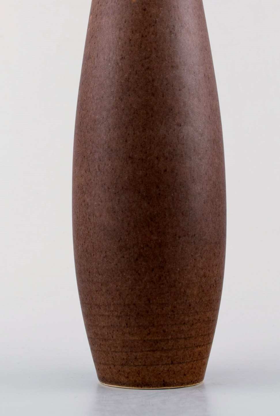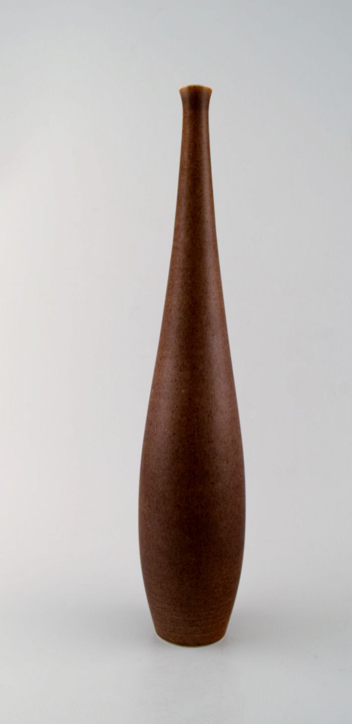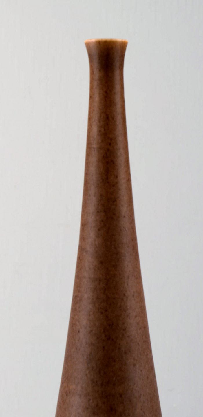 Jacob Siv for Syco, Strömstad, Svensk keramiker. Stor smuk keramikvase med smal hals, glasur i brune nuancer. Måler 36,5 cm. Stemplet. I perfekt stand.