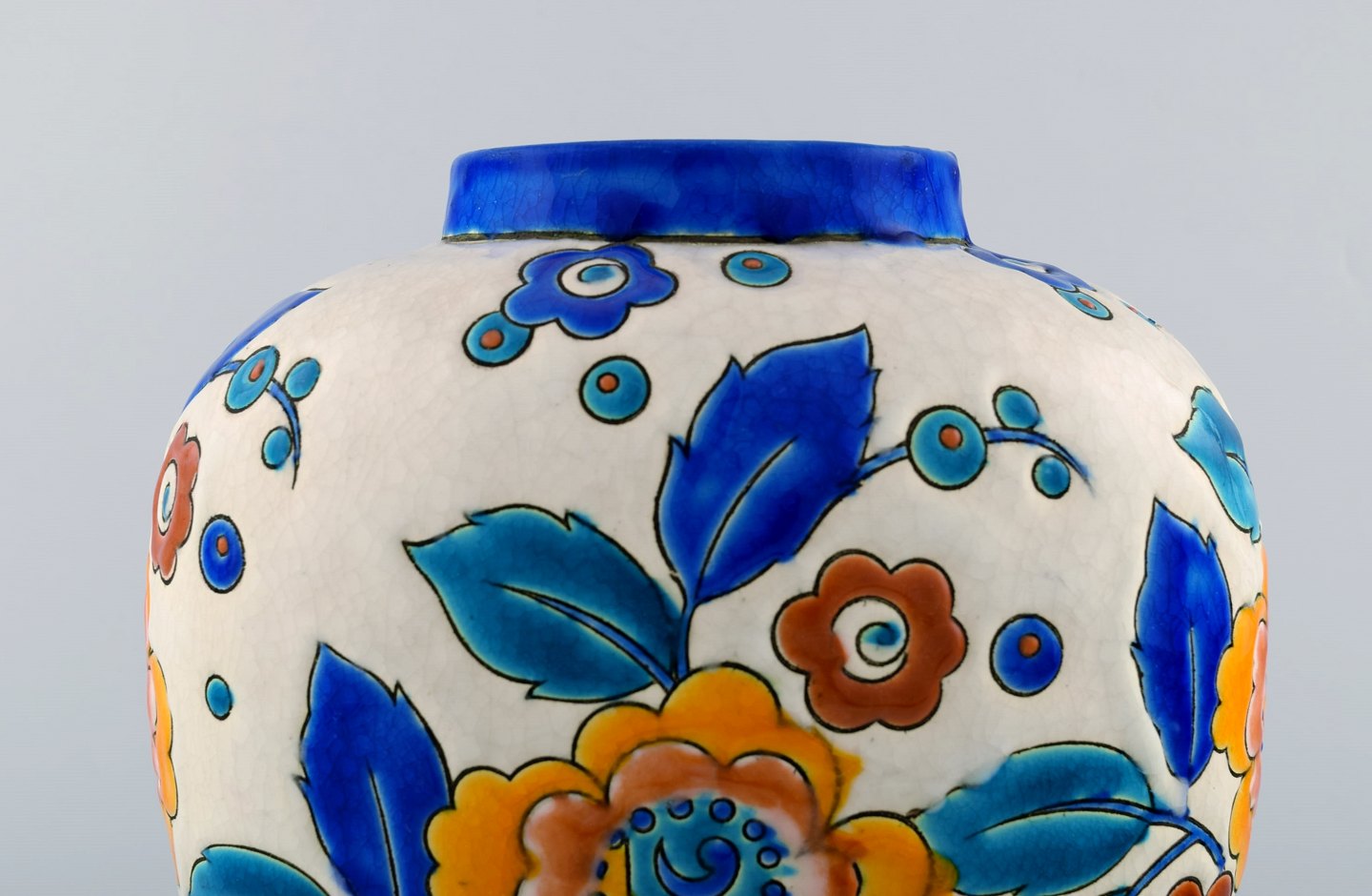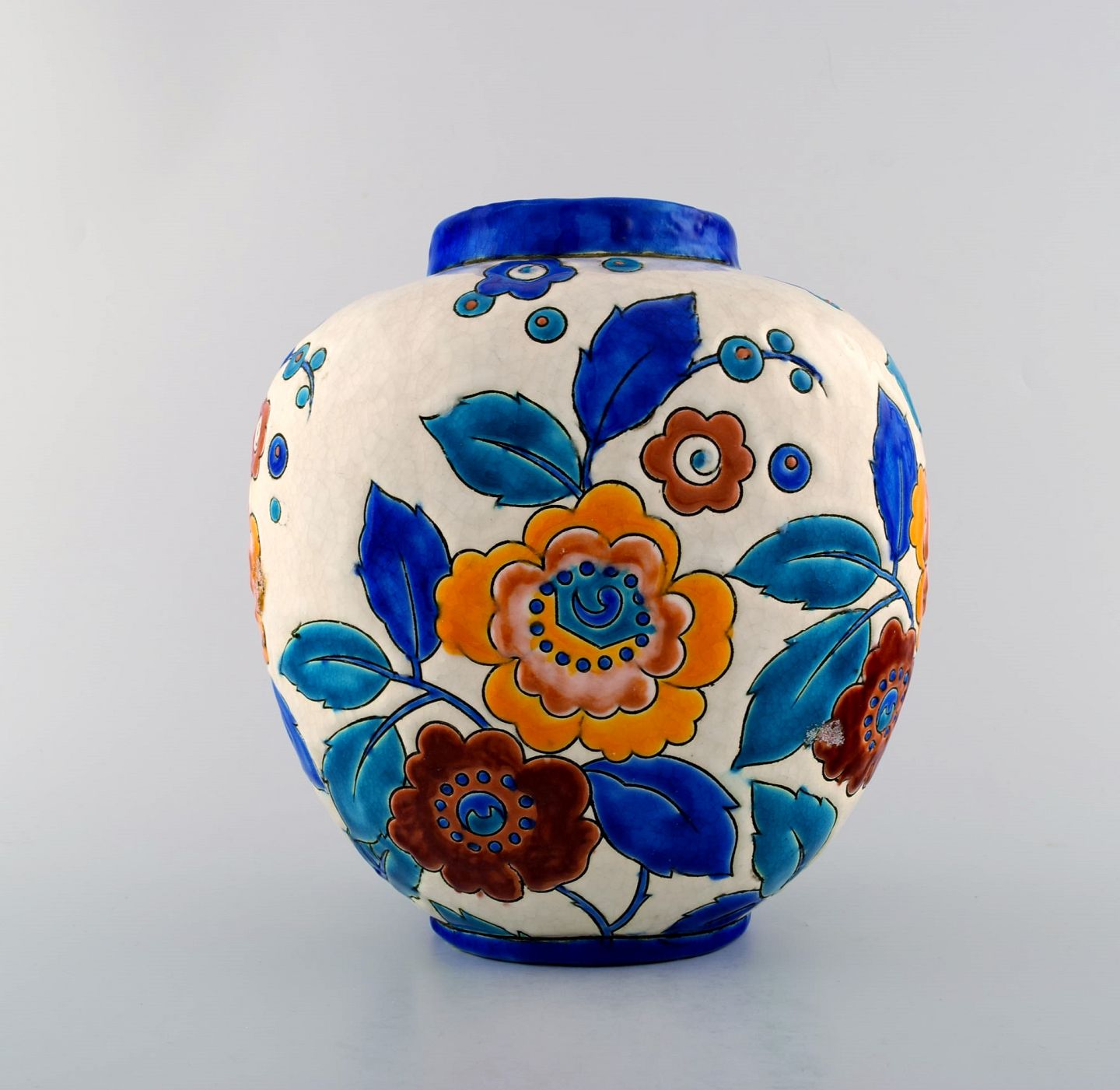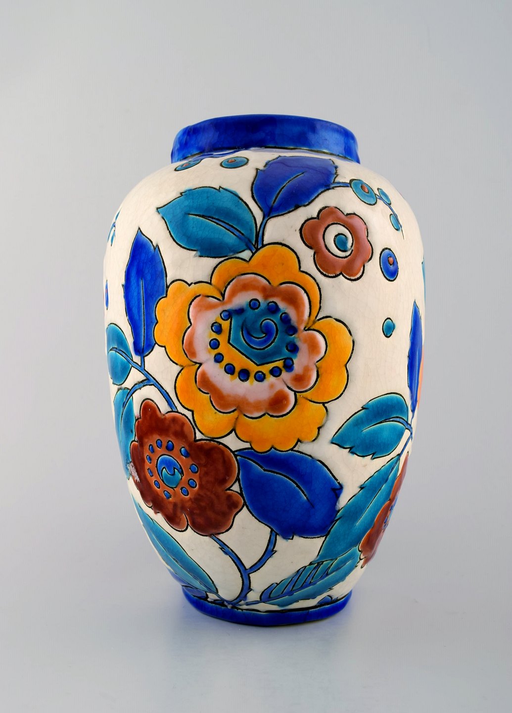 Boch Freres Ceramic, Belgium large art deco ceramic vase. 1930 / 40s. In perfect condition. Marked. Measures: 23 cm. x 22 cm.
