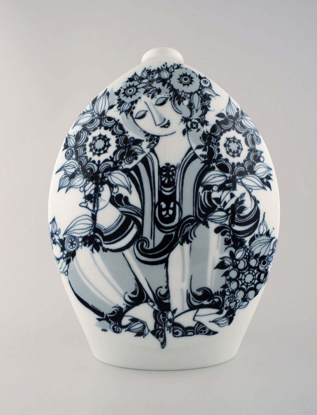 Rosenthal Studio Line, Bjorn Wiinblad large porcelain vase, decorated in blue. In perfect condition. Measures 37 x 26 cm. Marked.