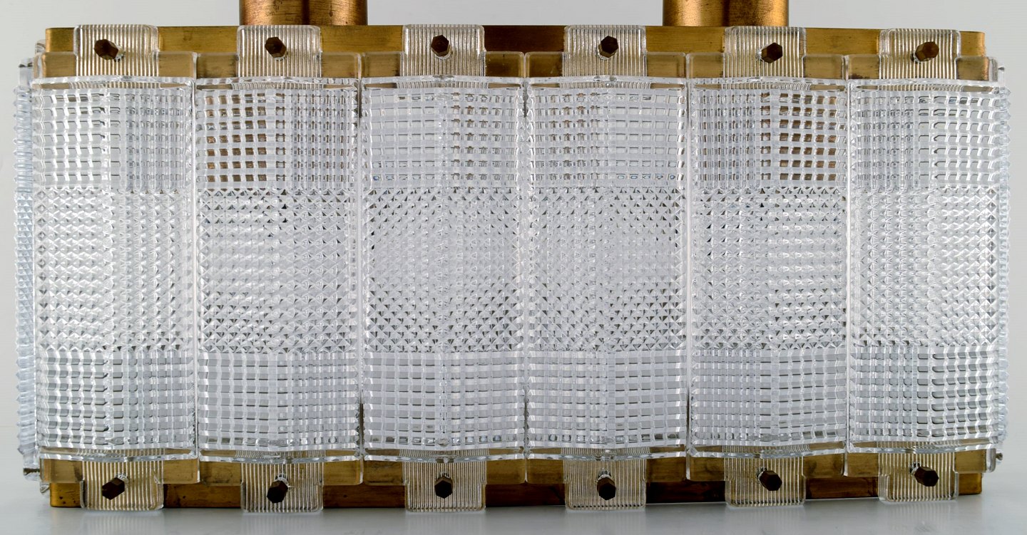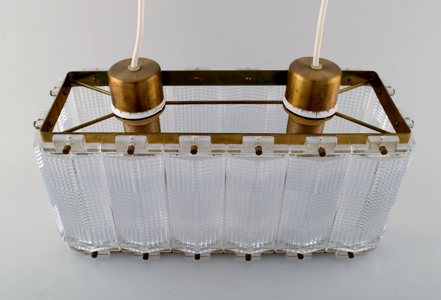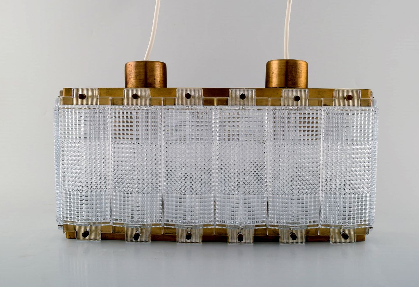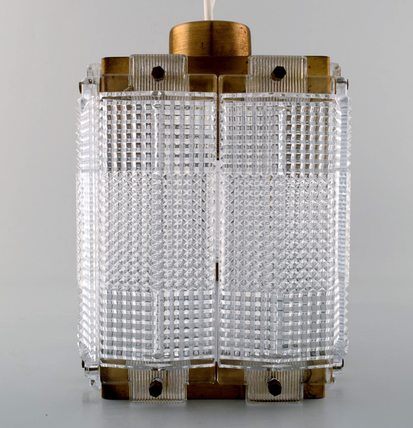 Carl Fagerlund for Orrefors loftlampe i kunstglas med messing beslag.