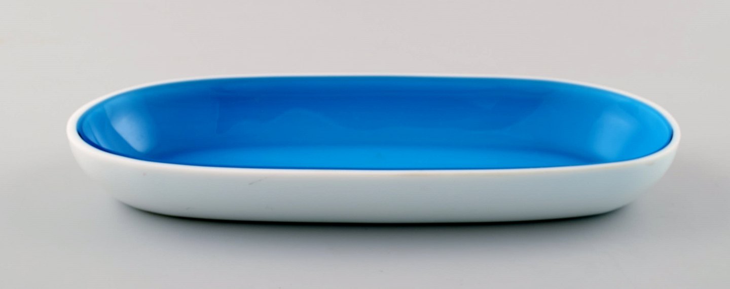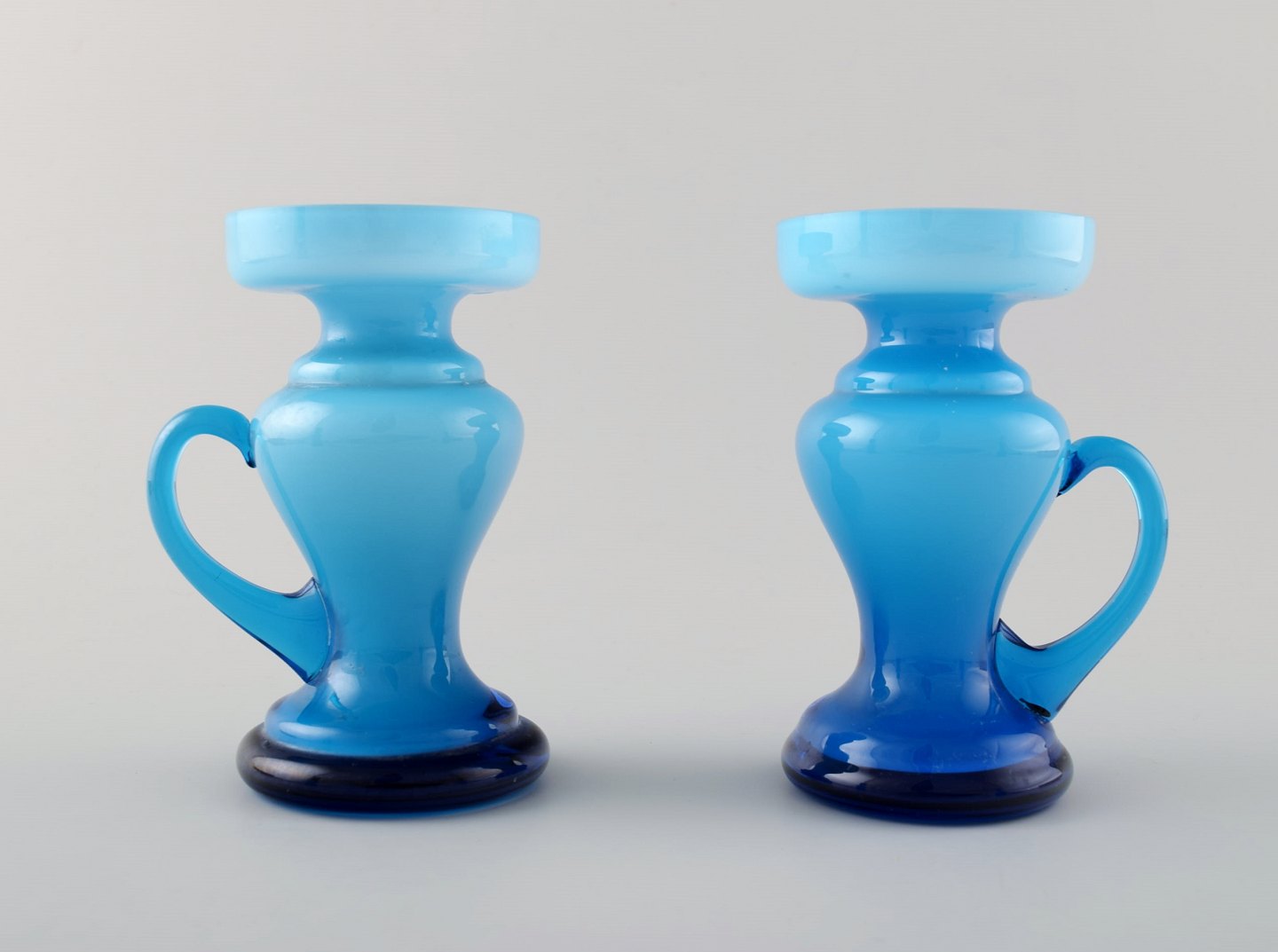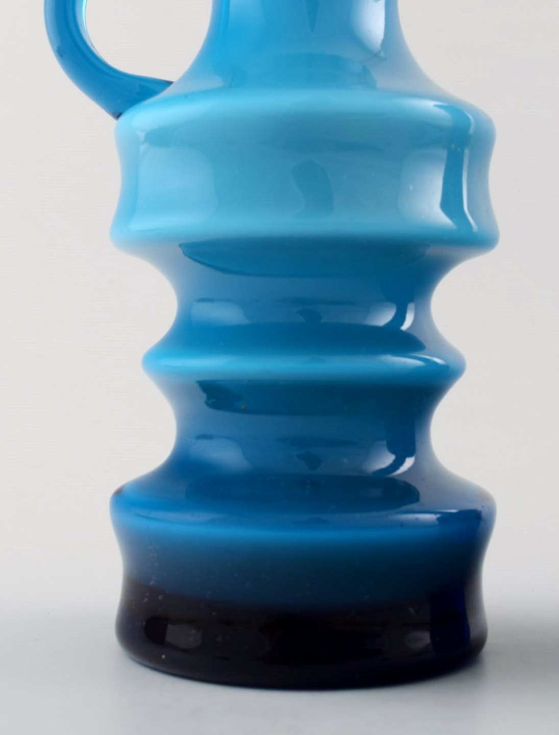 Samling svensk kunstglas, 4 turkise vaser og et fad i moderne design. I perfekt stand. Største måler : 21 cm. x 9 cm.