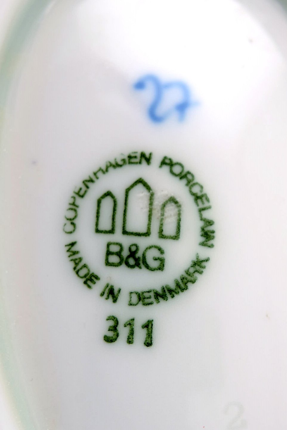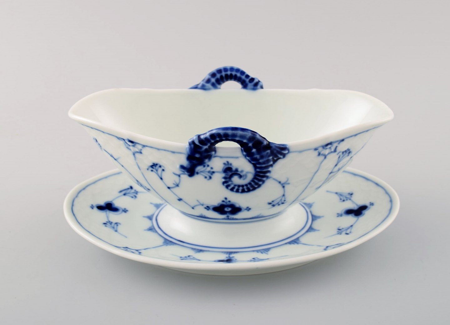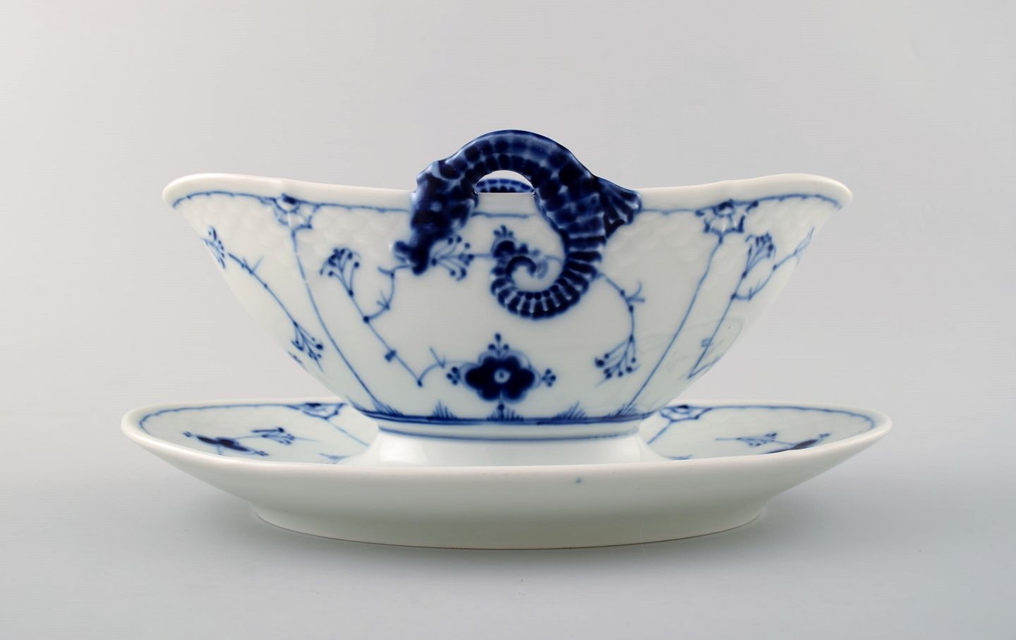 Bing & Grøndahl, B&G musselmalet sovsekande på fad. Måler : 23 x 11 cm. Nummer 311. 2. sortering, i perfekt stand.