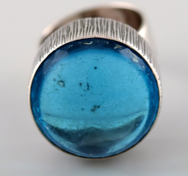 Swedish modernistic silver ring with topaz.