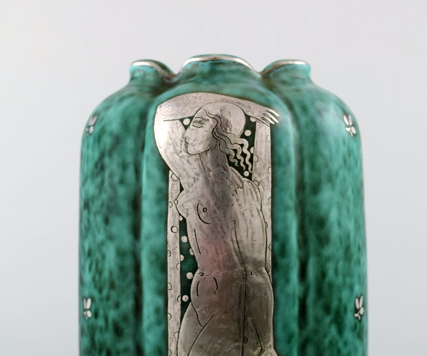 Wilhelm Kåge, Gustavsberg, Argenta vase i keramik, Art deco. Nøgne kvinder. Måler 22 cm. x 12 cm. Modelnummer 869. Stemplet Gustavsberg, Argenta. I perfekt stand.