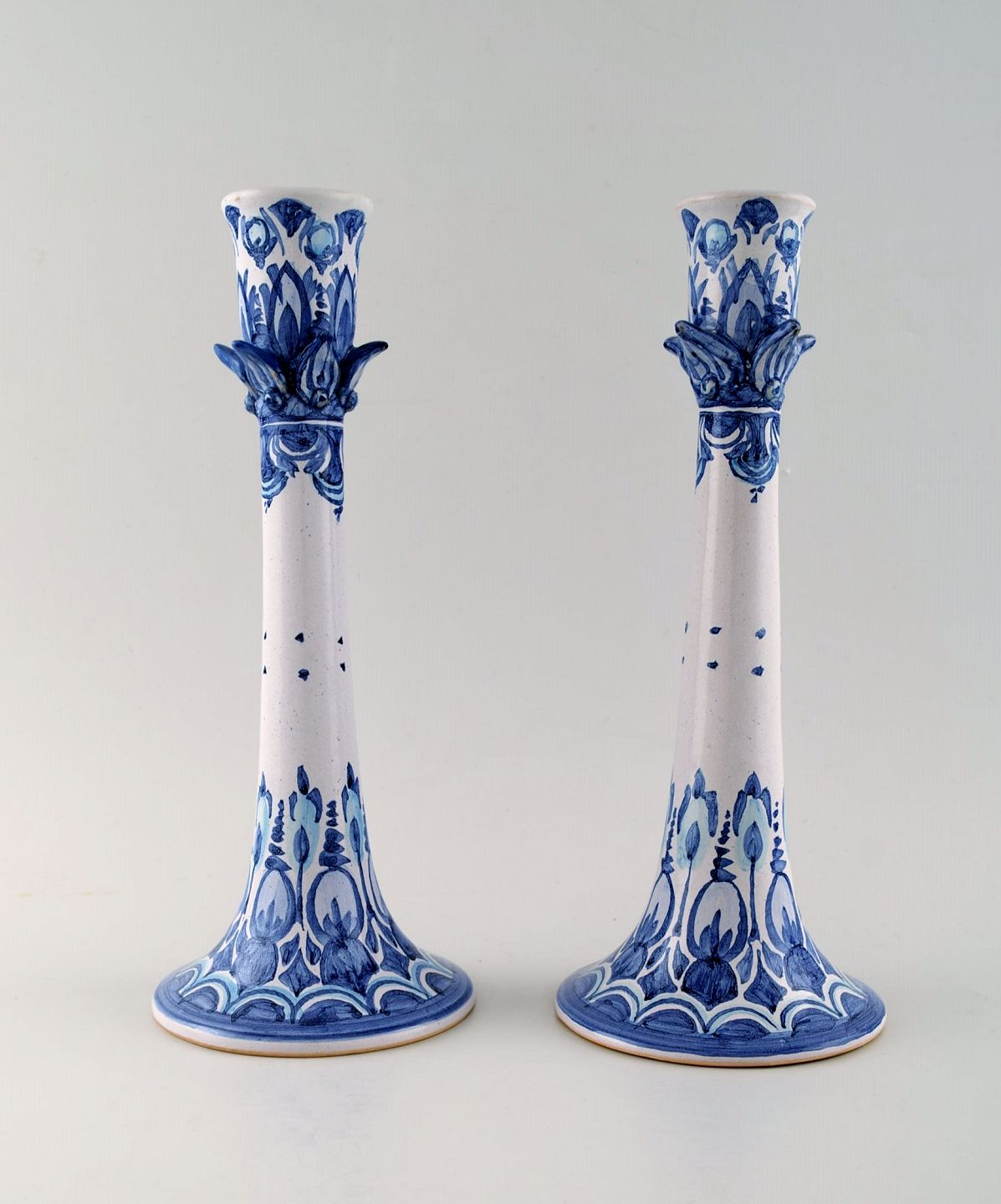 A pair of rare Bjørn Wiinblad unique ceramic candlesticks. Measures: 25 x 10 cm. Signed, 2001. Model number L 32. In perfect condition.