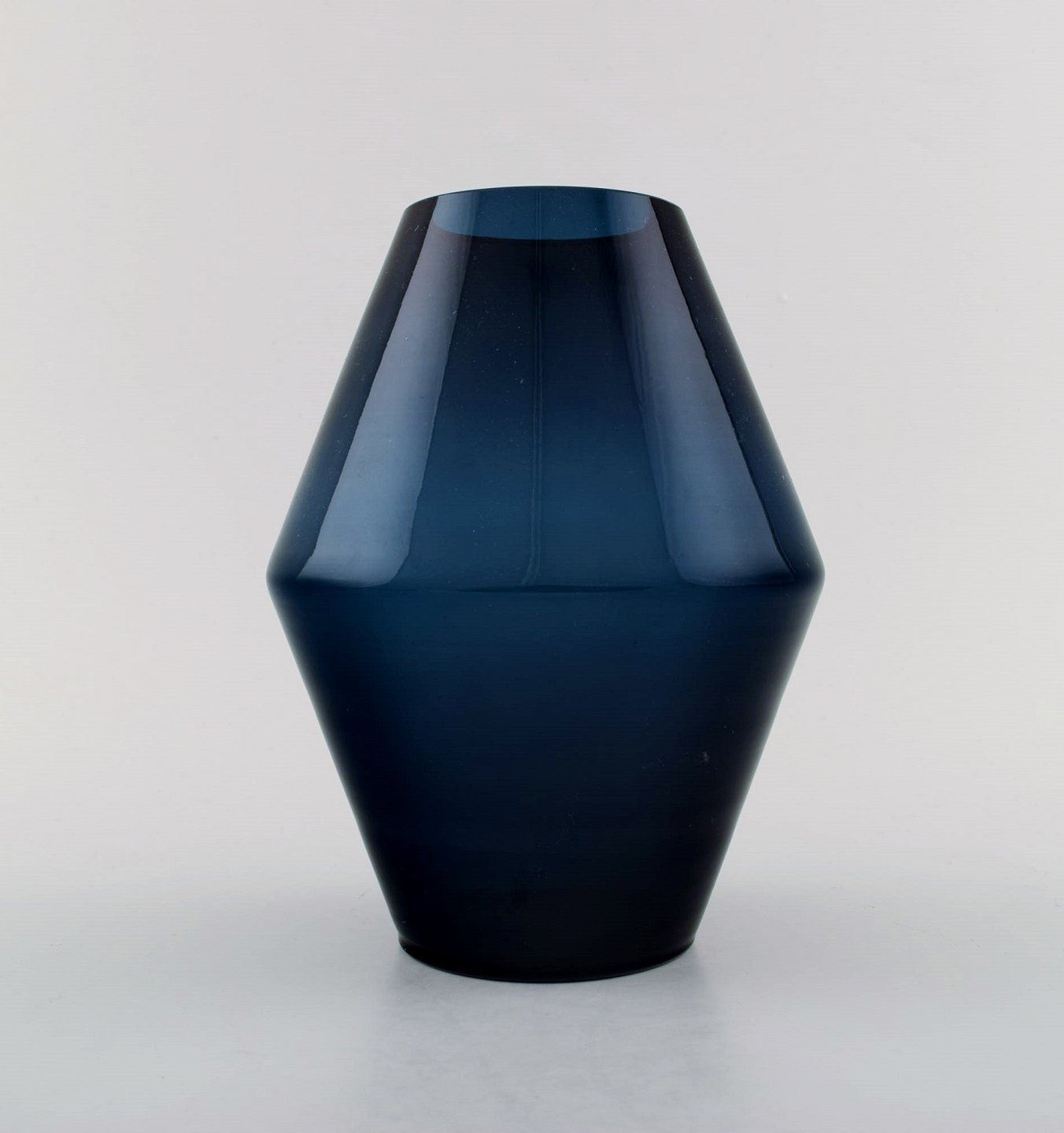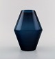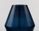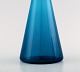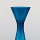 Swedish art glass, two hand blown vases in blue, 1960 s. Measures: 24 cm. x 9 cm. (largest) In perfect condition.