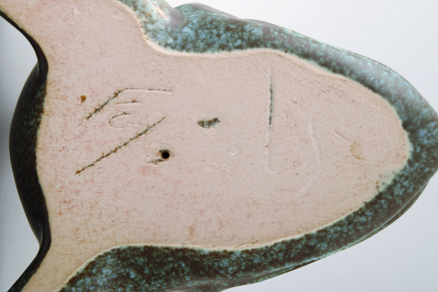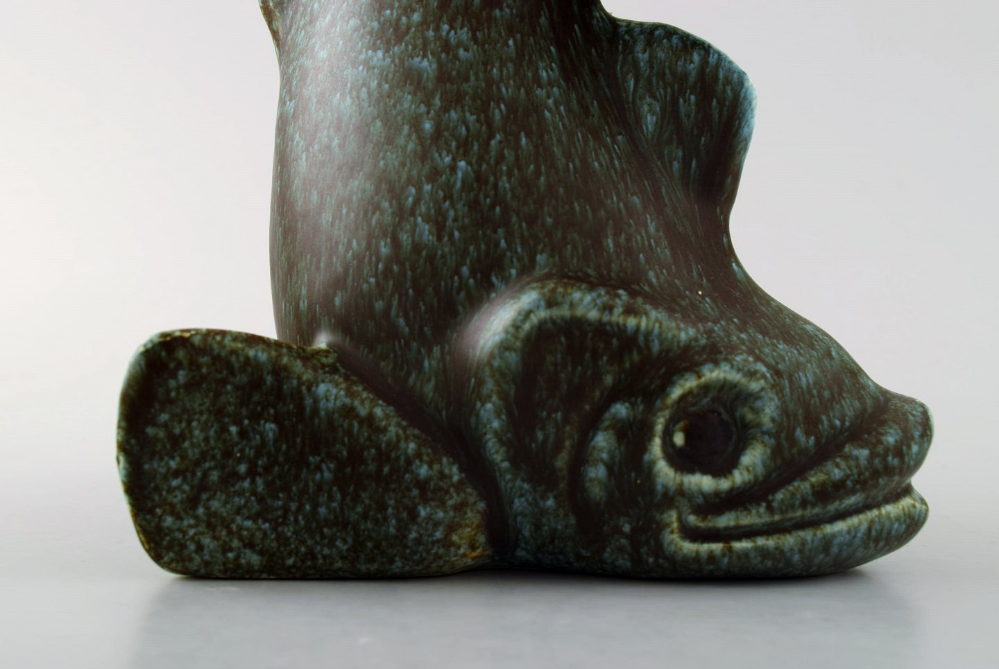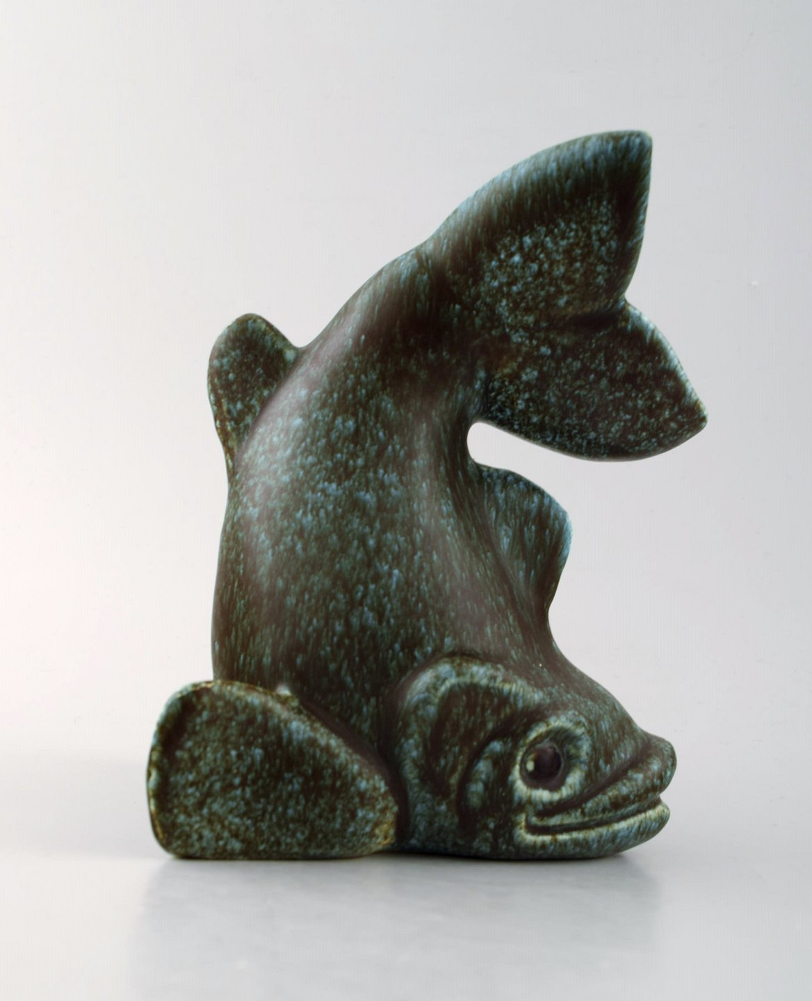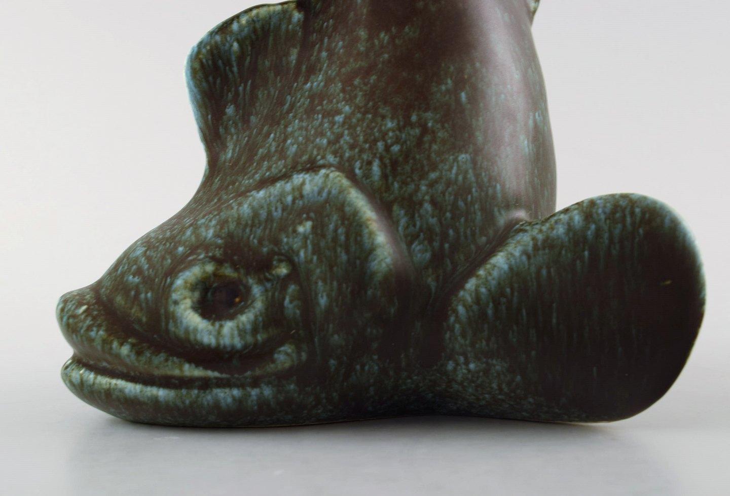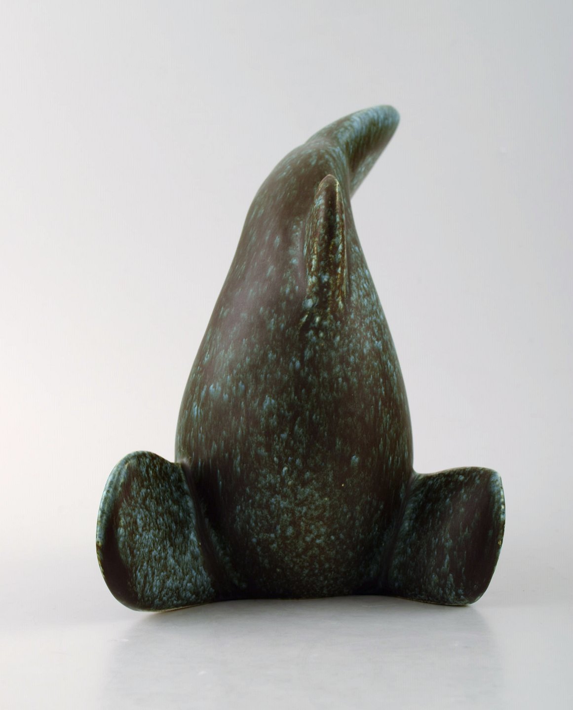 Skandinavisk keramiker. Delfin i keramik, grønglaseret. Måler : 18 cm. x 14 cm. I perfekt stand. Utydeligt stemplet.