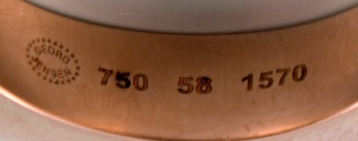 Georg Jensen, Dune ring udført i 18 kt. rosaguld, prydet med brillanter, samlet ca. 0.13 ct. Farve: Lysebrune Klarhed. VS. Dessinnr. 1570. Ringstr. 58 ø 18,25 mm. Vores guldsmed kan ændre til alle størrelser for kr. 300.-