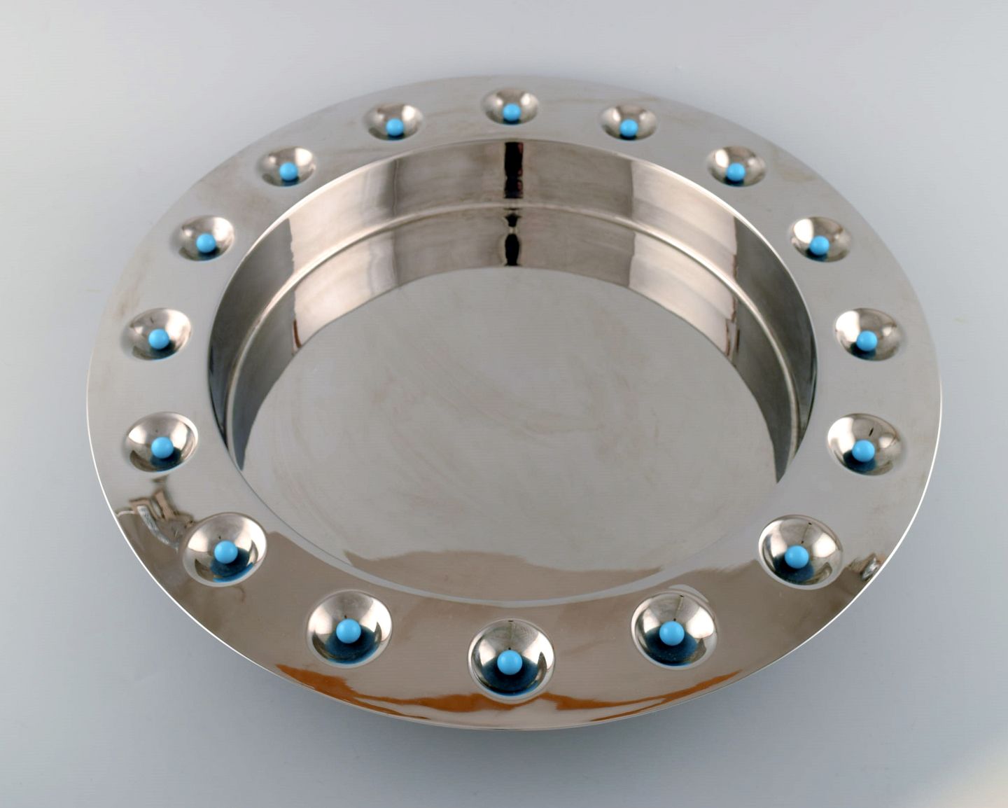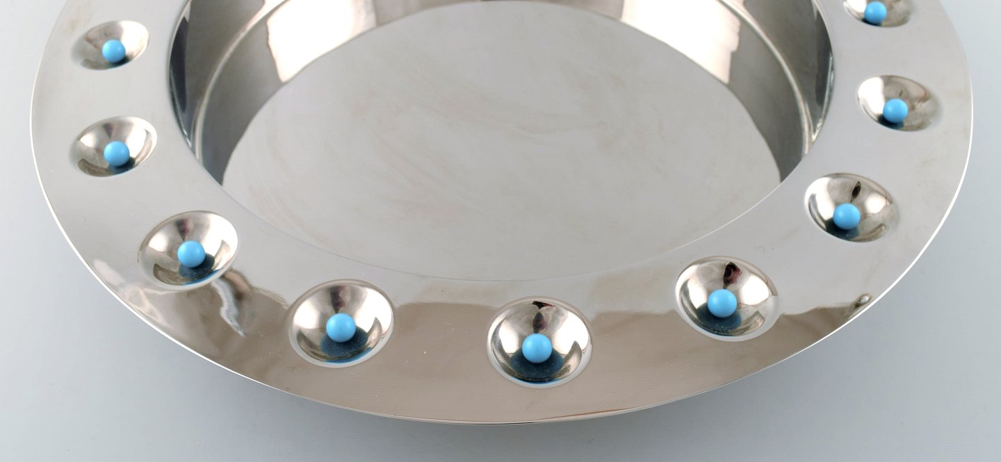 TOBIA SCARPA for Morellato, Italy, a large modern design metal bowl with turquoise balls. Diameter 42 cm. In perfect condition. Marked.