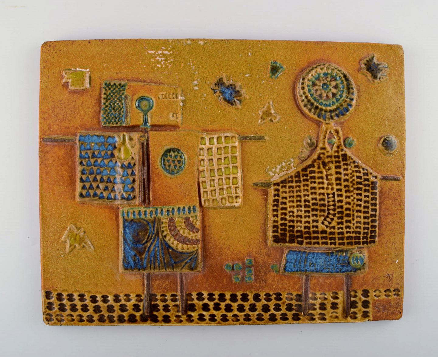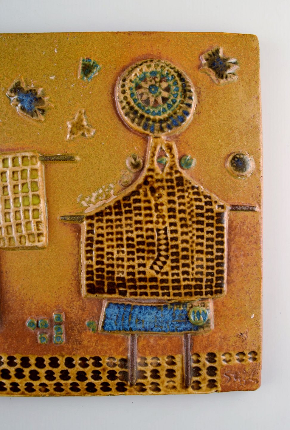 Sjælden vægplakette af Stig Lindberg, Gustavsberg. Stentøj. 1950´erne. Måler : 34 cm. x 26 cm. Dybde 1,5 cm. Signeret. I perfekt stand.