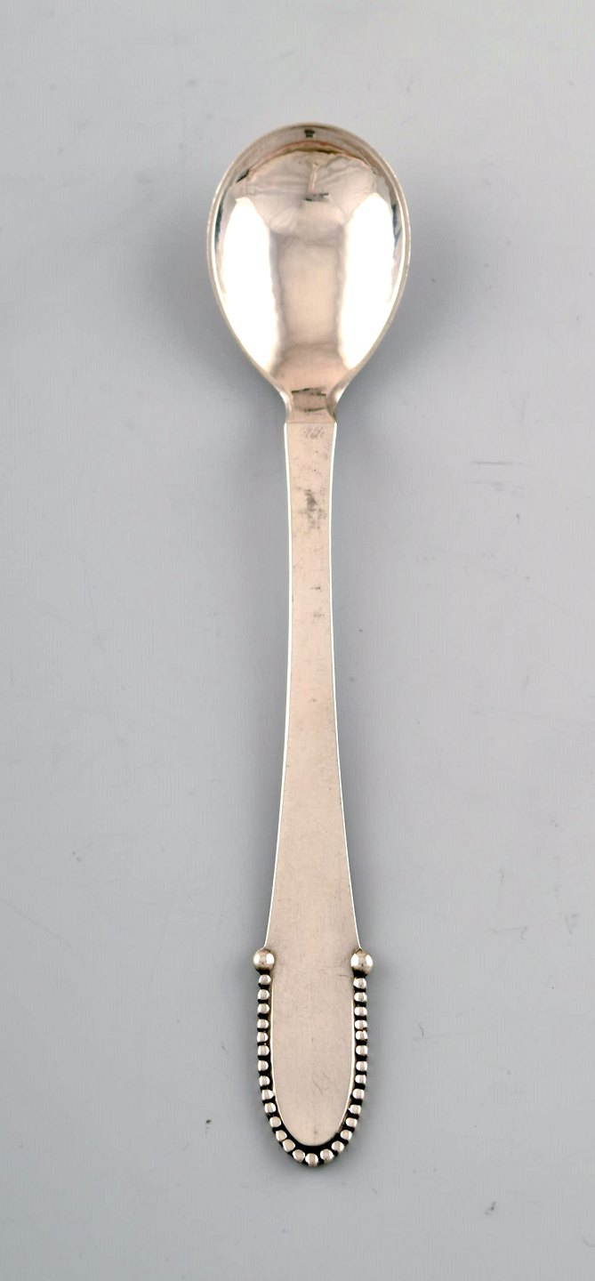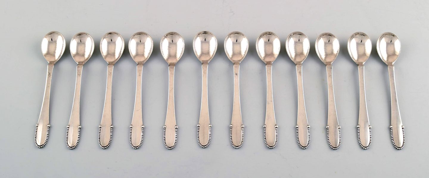 Georg Jensen Beaded 12 tea spoons in full silver. Measures 11.5 cm. Stamped. In perfect condition.