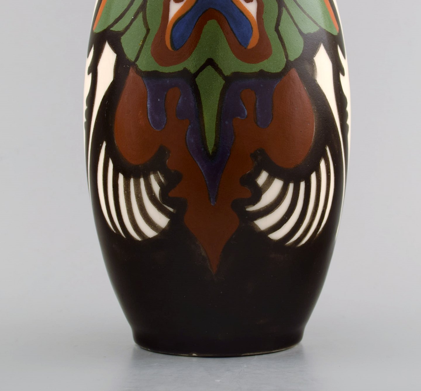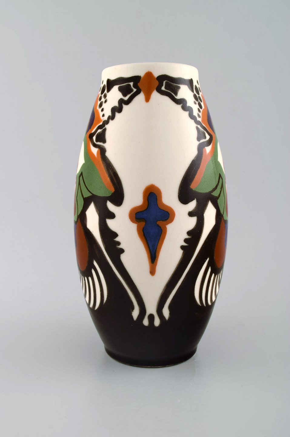 Eskaf, Holland art nouveau keramik vase. Håndmalet, 1930´erne. Måler : 27 cm. x 13 cm. Stemplet. I perfekt stand.