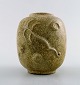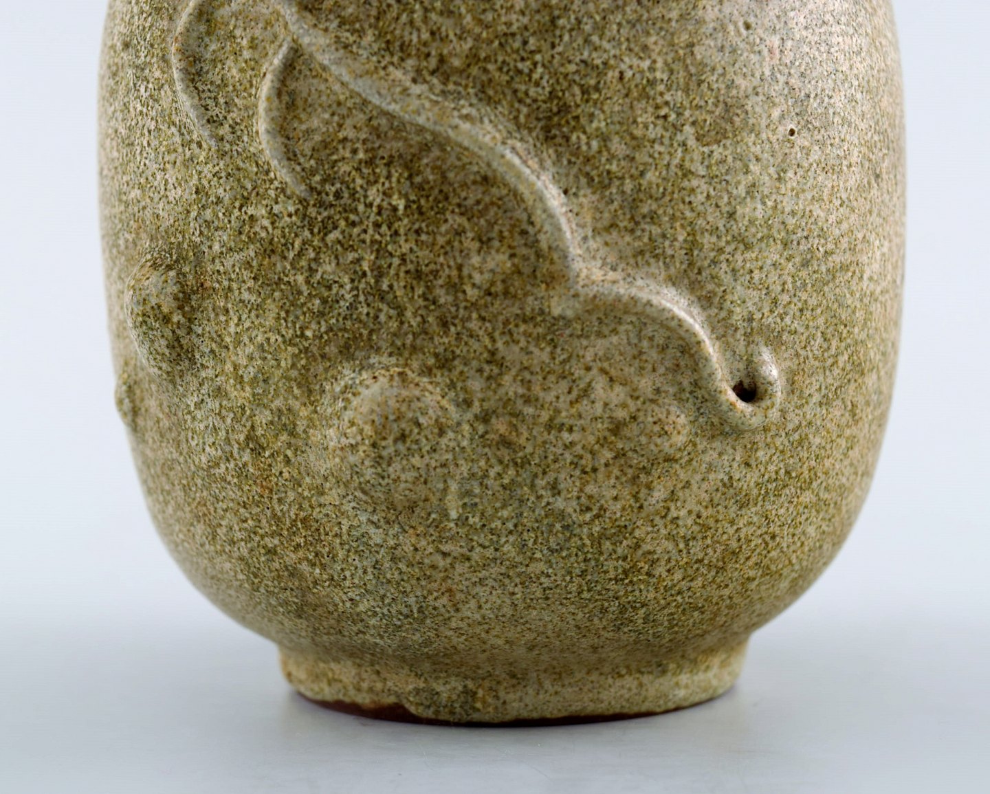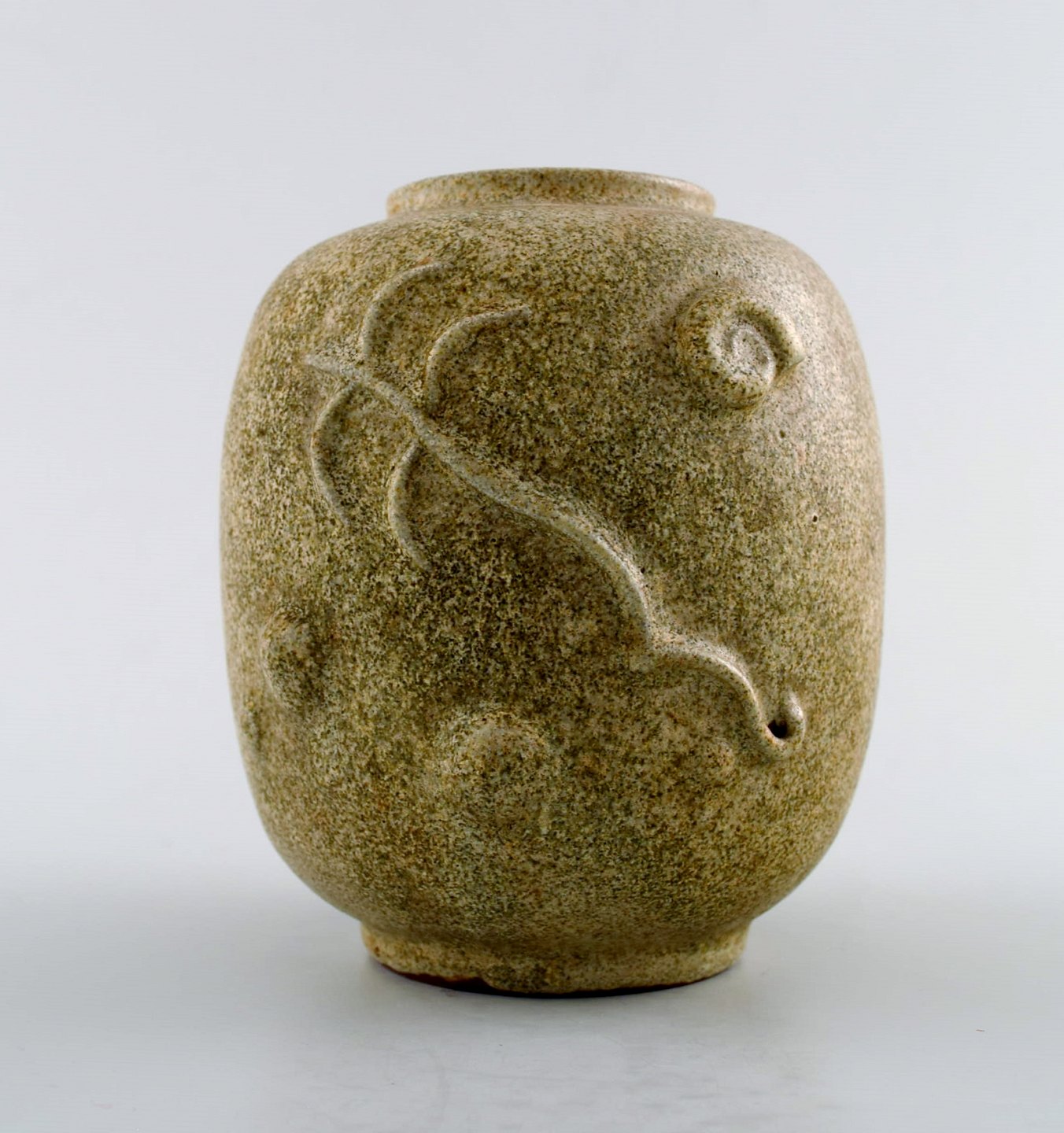 Beautiful glaze in sand colored shades. Leaves in relief.