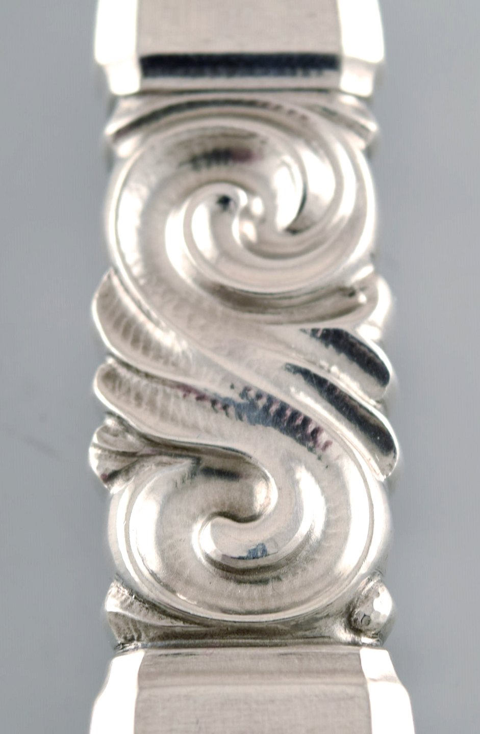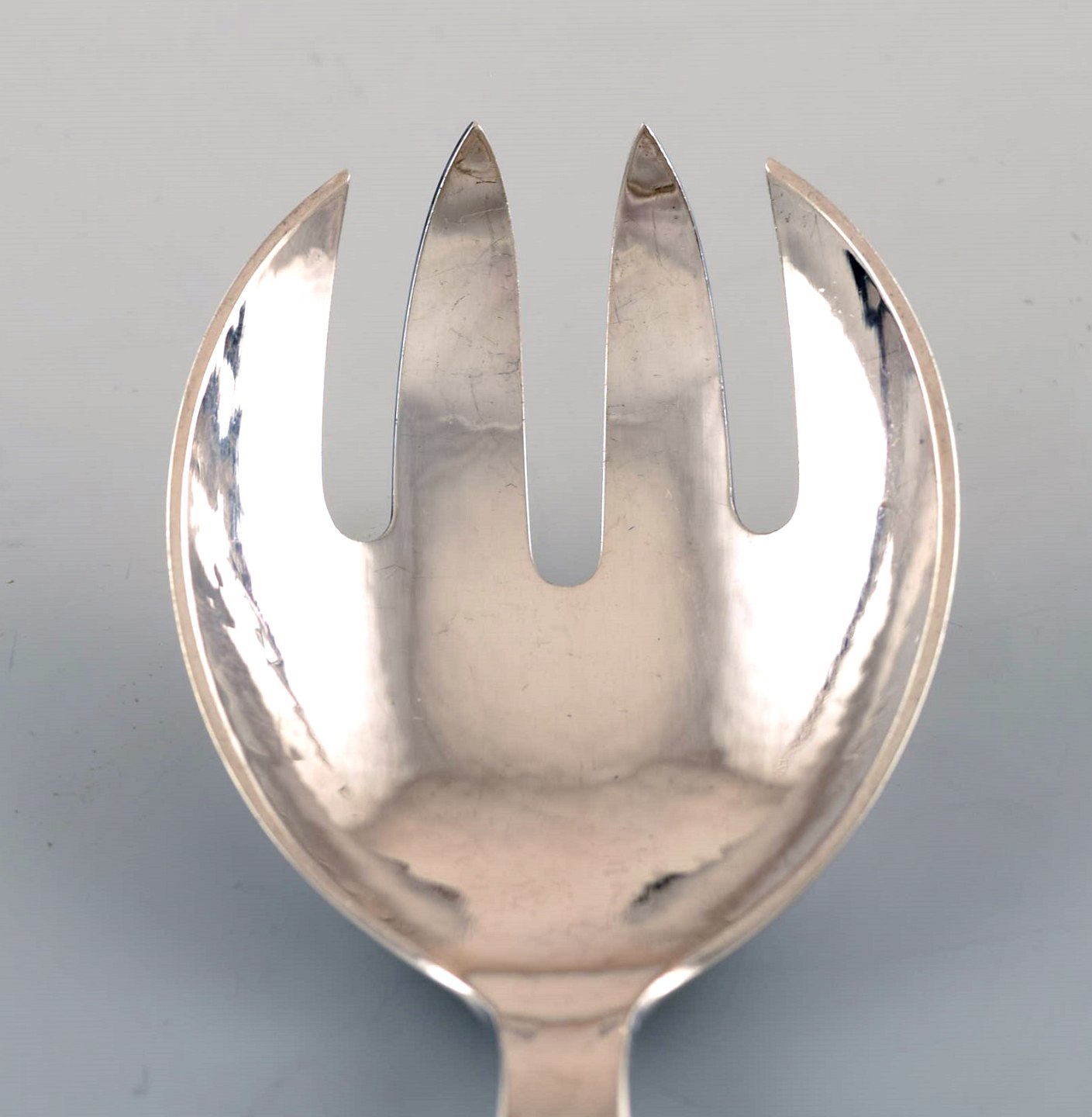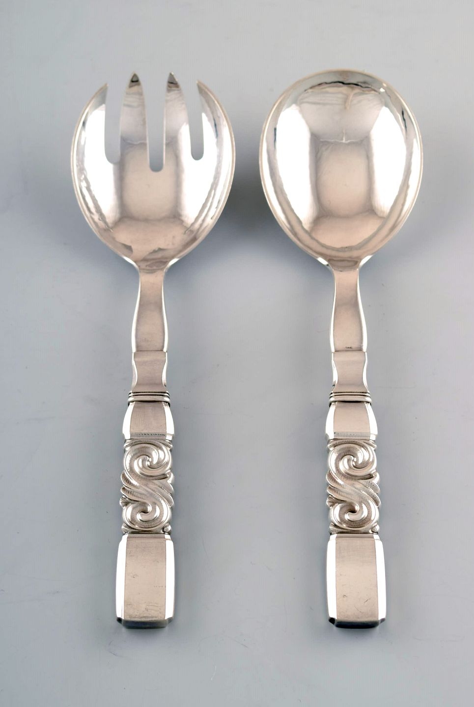 Georg Jensen. Cutlery, Scroll No. 22, hammered sterling silver salad set in full silver. In perfect condition. Stamped. Measures: 22 cm.