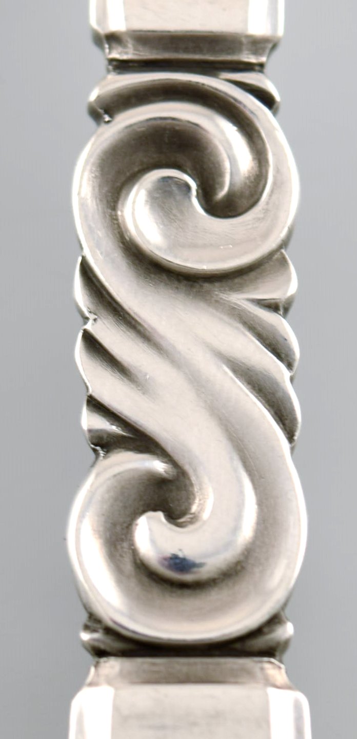 Georg Jensen. Cutlery, Scroll no. 22, hammered Sterling Silver consisting of: 6 bouillon spoons. In perfect condition. Stamped. Measures: 13 cm.