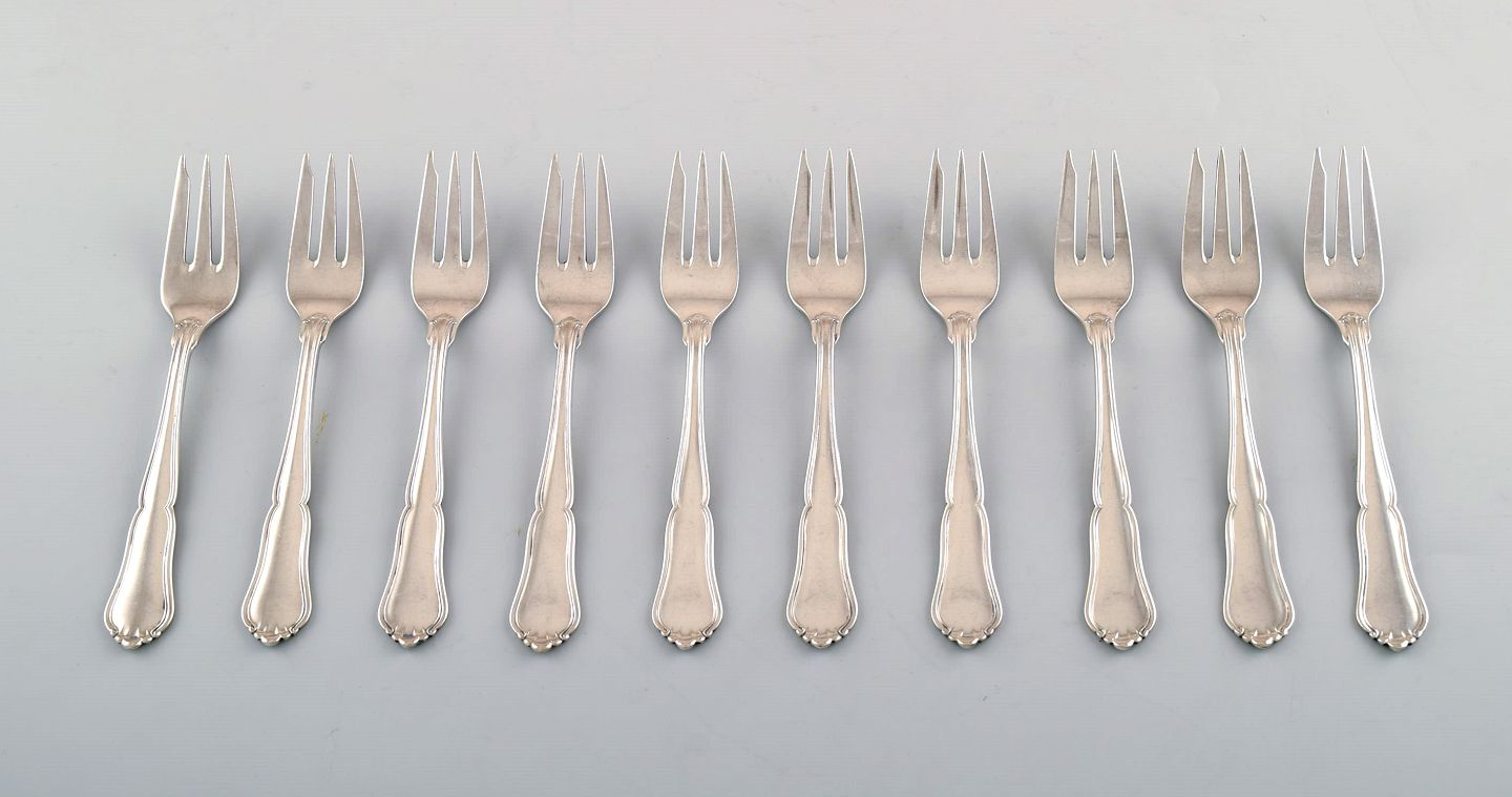 5 kagegafler "Annemarie" dansk tretårnet sølv. Stemplet : Guardein : Jens Sigsgaard. 1930´erne. I flot stand. Måler 13,5 cm.