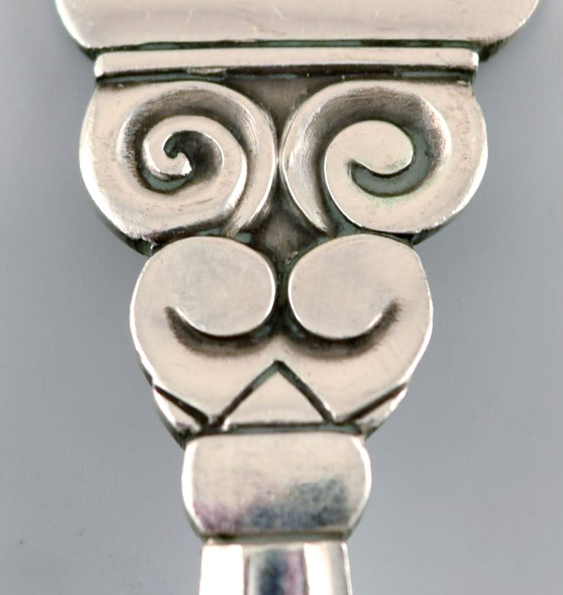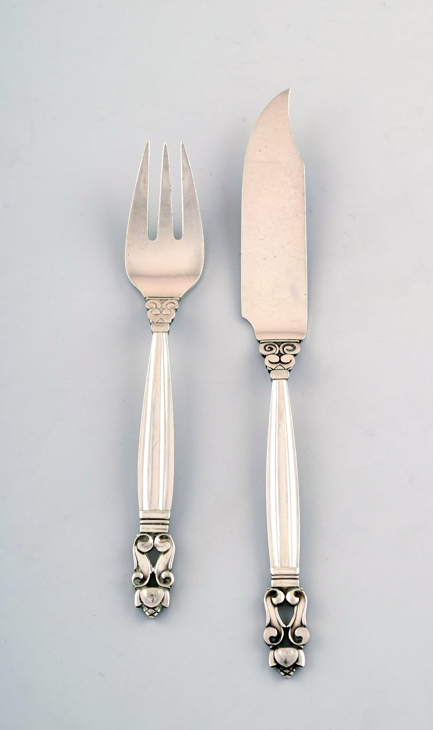 Georg Jensen "KONGE" fiskeservice til fire. Designer: Johan Rohde. Sterlingsølv. Længde: kniv 21 cm. Stemplet. I perfekt stand.