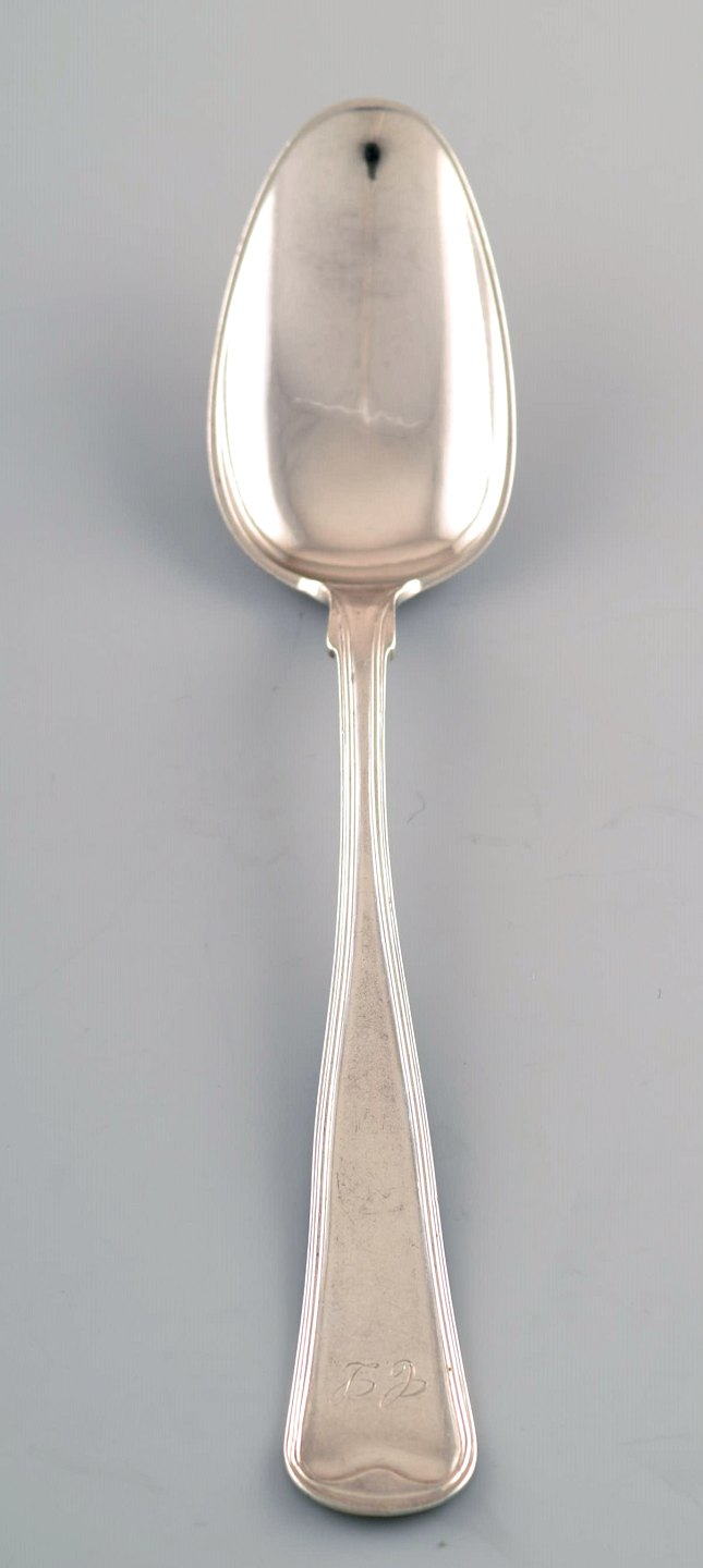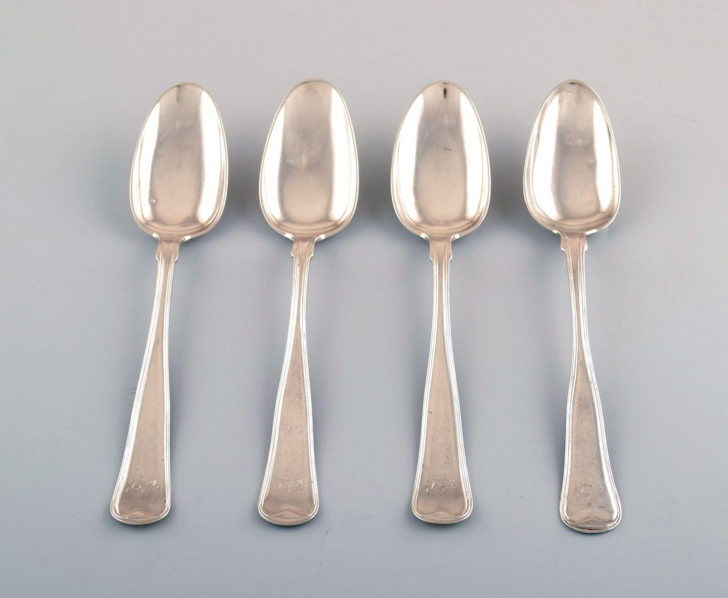 4 dessertskeer, gammel riflet, tretårnet sølv. Guardein : Jens Sigsgaard. Måler : 18 cm. I flot stand. Stemplet.