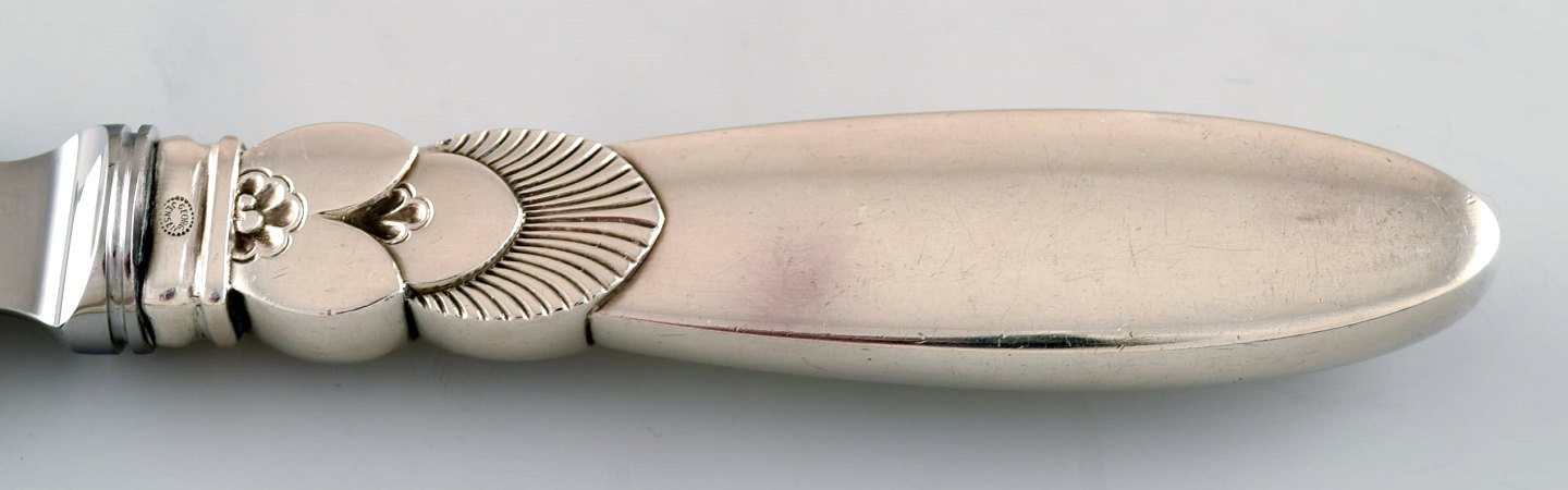 Georg Jensen Sterlingsølv 'Kaktus' bestik. Sjælden brødkniv. Måler 31 cm. I god stand. Stemplet. Designet af Gundorph Albertus i 1930.