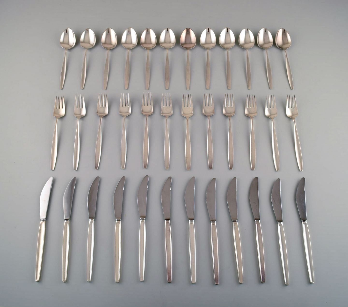 Georg Jensen Sterling Silver 'Cypress' Cutlery. Full dinner service, 36 pieces for 12 pers.