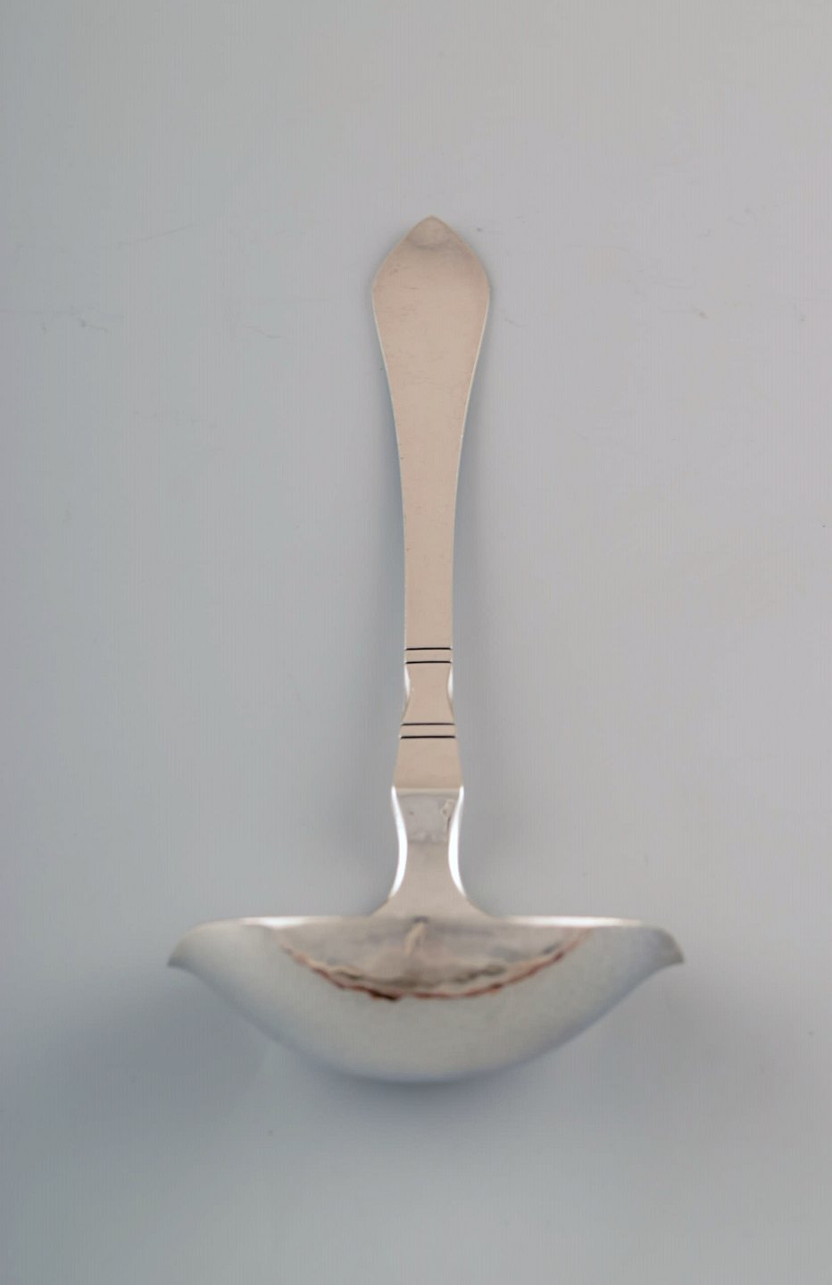 Georg Jensen. Continental (Antik) sovseske i helsølv, sølvbestik, hammerslået. Bestikket er formgivet af Georg Jensen og designet i 1906. I perfekt stand. Måler : 19 cm.