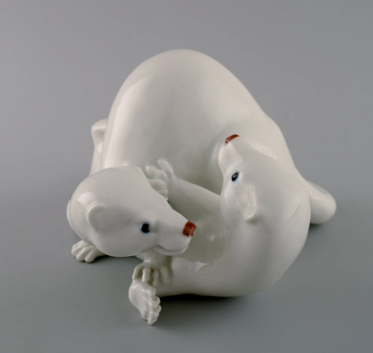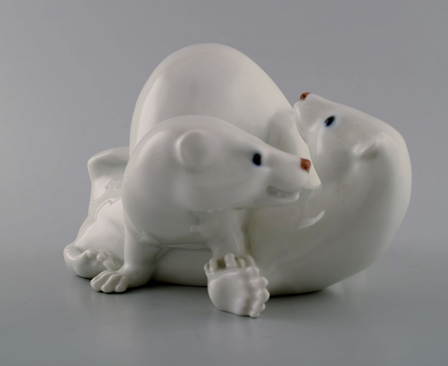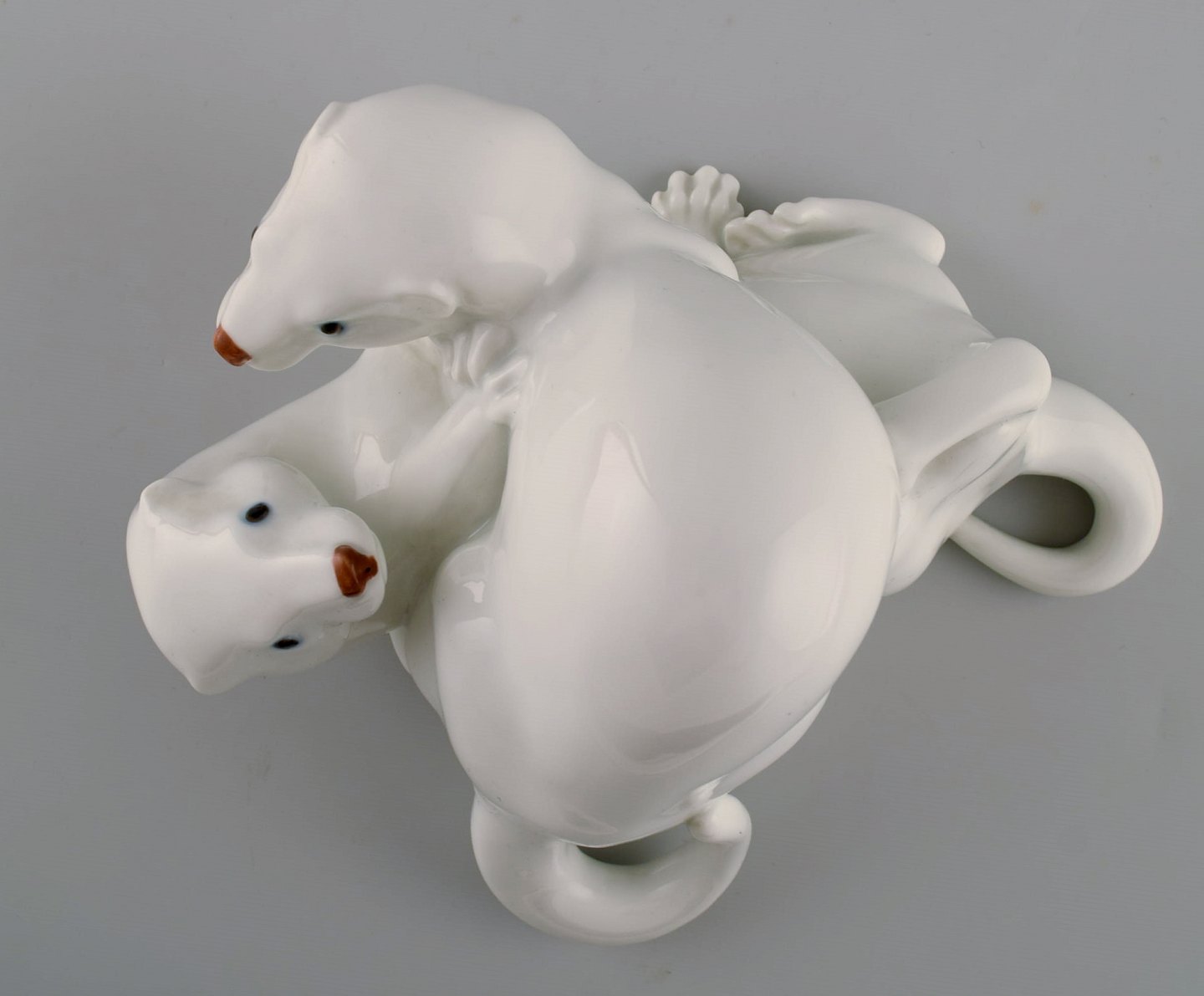 Sjælden Royal Copenhagen figur, par væsler. Dekorationsnummer 4572. Designet af Jeanne Grut. 1. sortering. Længde 18 cm. Højde 15 cm. Perfekt stand.