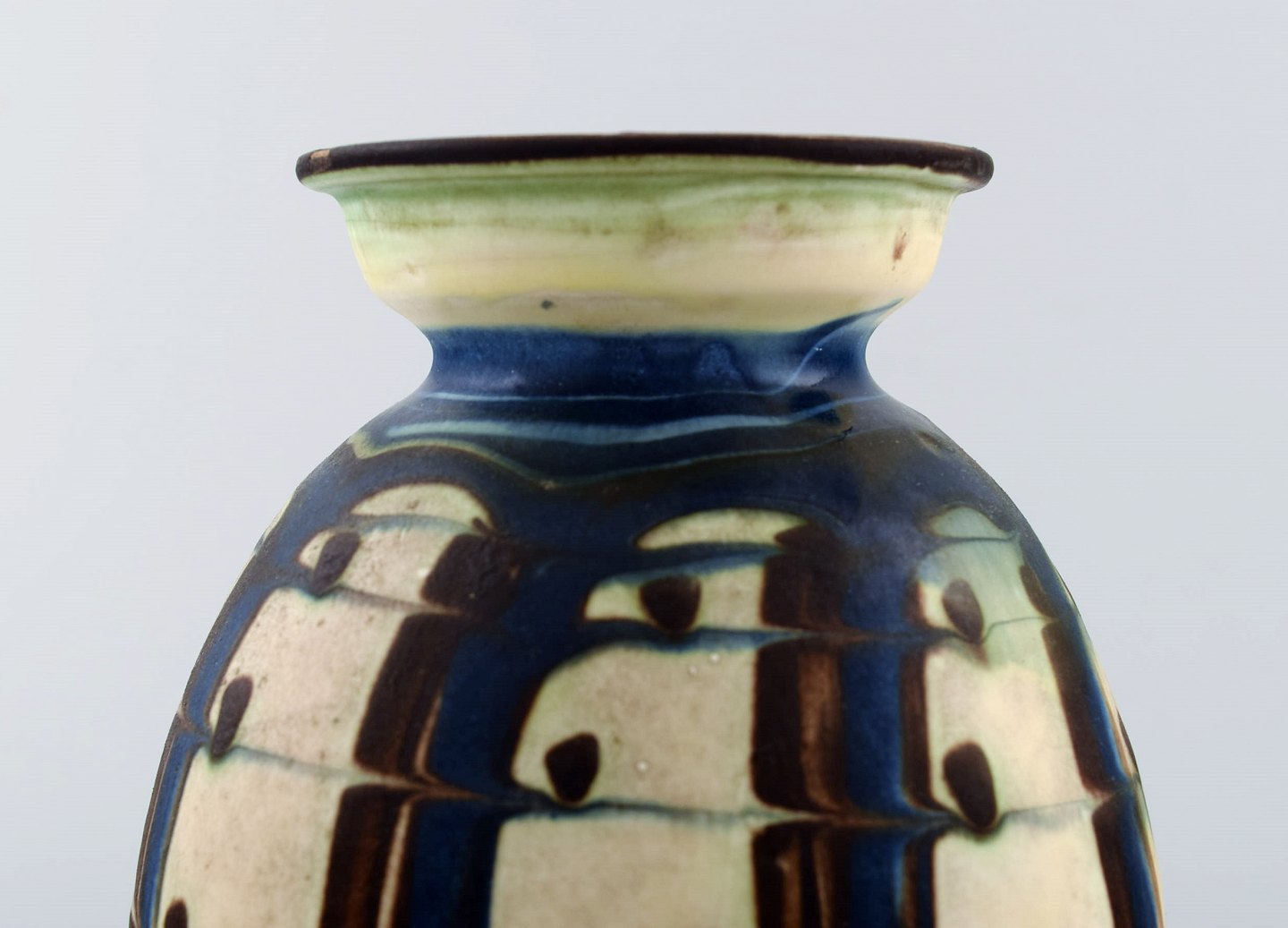 Kähler, Denmark, glazed stoneware vase in modern design. 1930/40 s. Cow horn technique. Stamped. Measures: 18 cm. X 14 cm. In perfect condition.