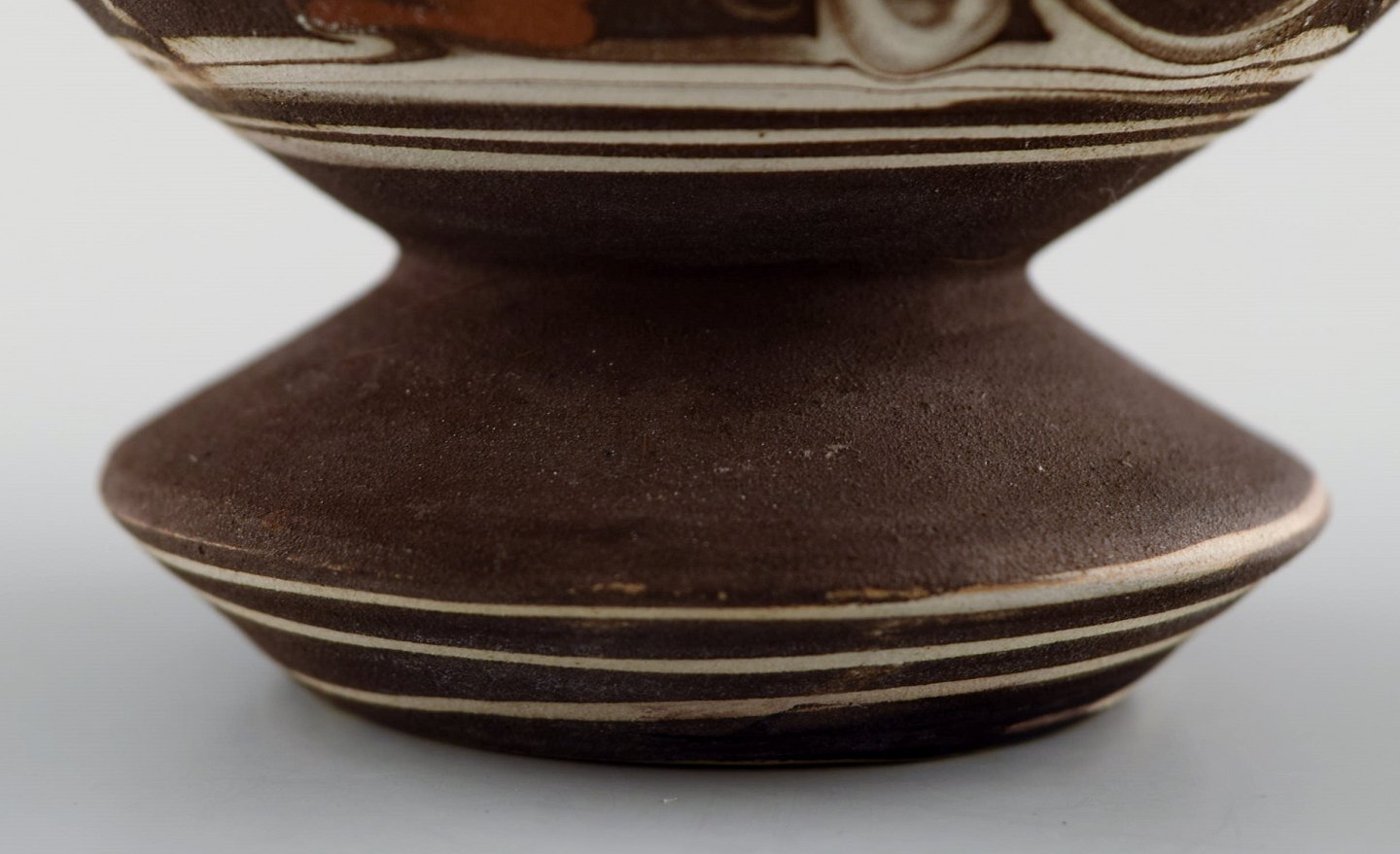 Kähler, HAK, glaseret stentøjsvase i moderne design. Sjælden form. 1930/40´erne. Kohornsteknik. Stemplet. Måler : 12 cm. x 7,5 cm. I perfekt stand.