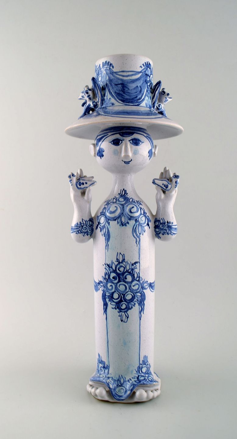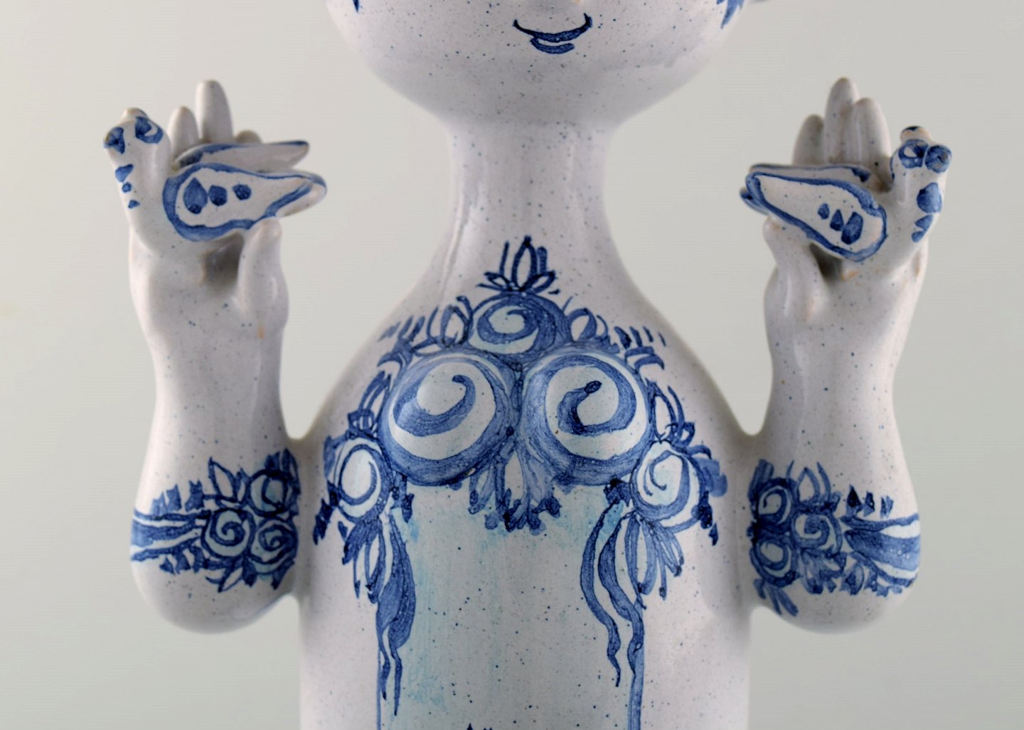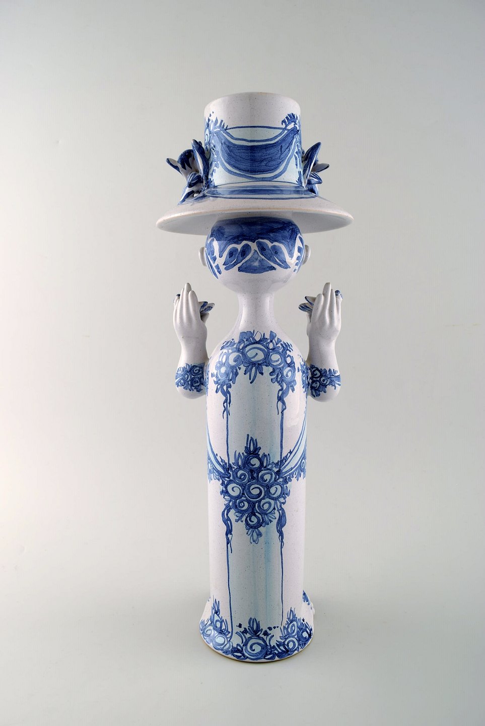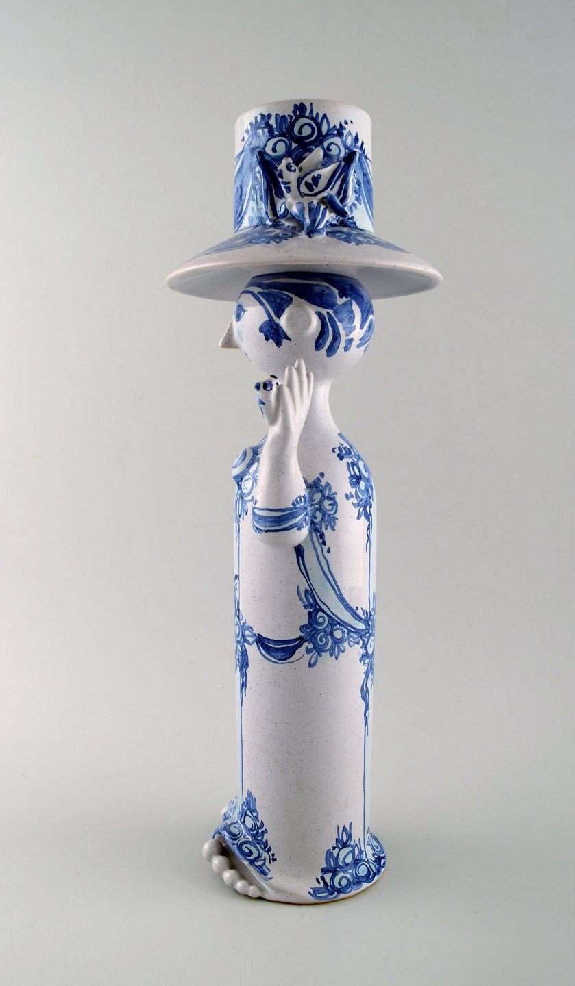 Bjørn Wiinblad ceramics, blue lady with two birds. Decoration number M35. From 2003. Height 39 cm. Diameter 15 cm. In perfect condition.