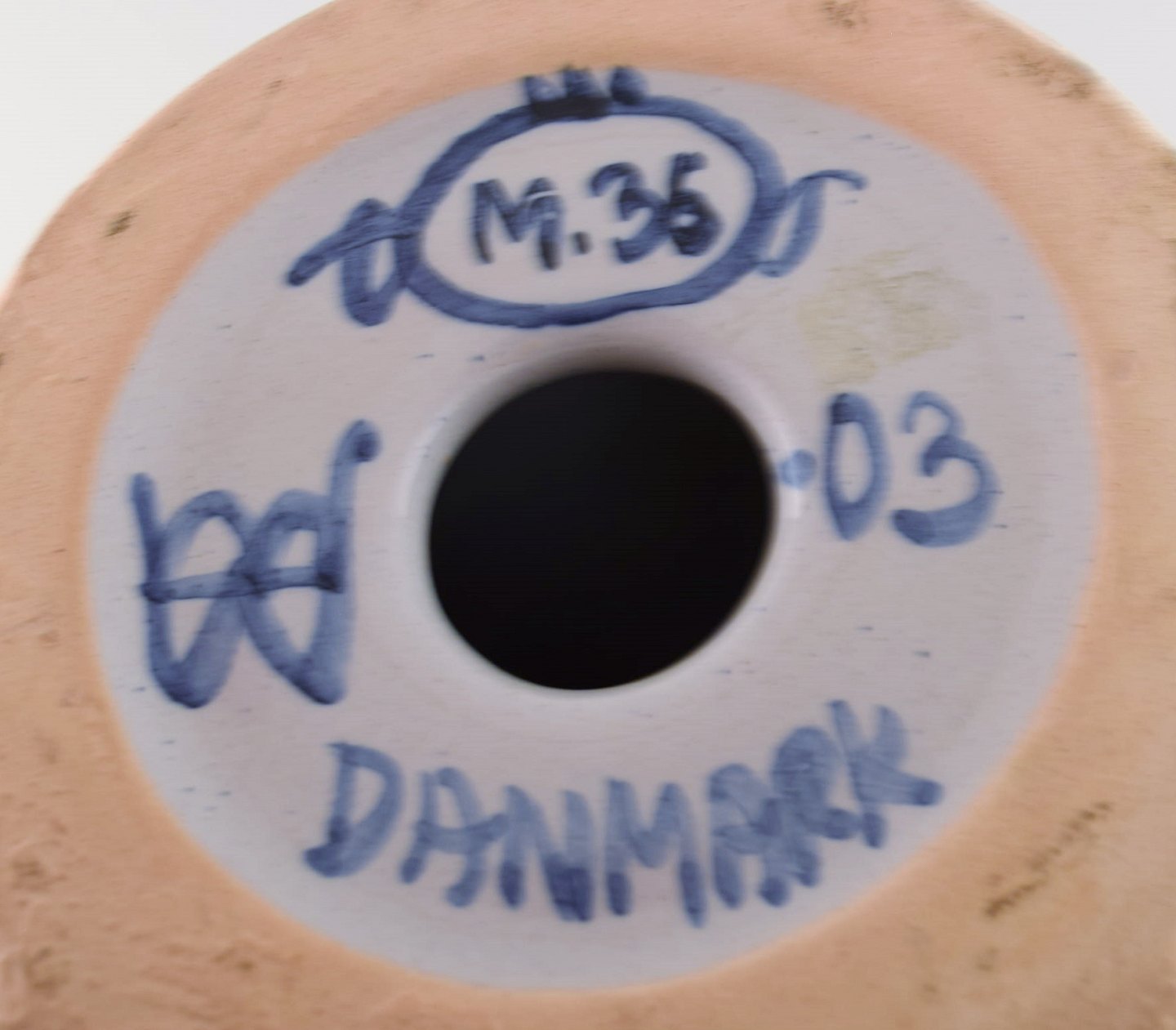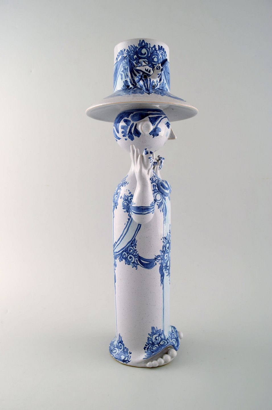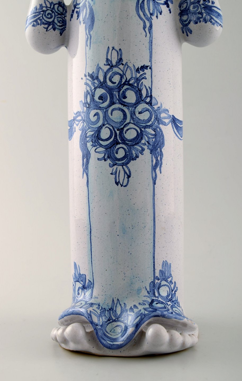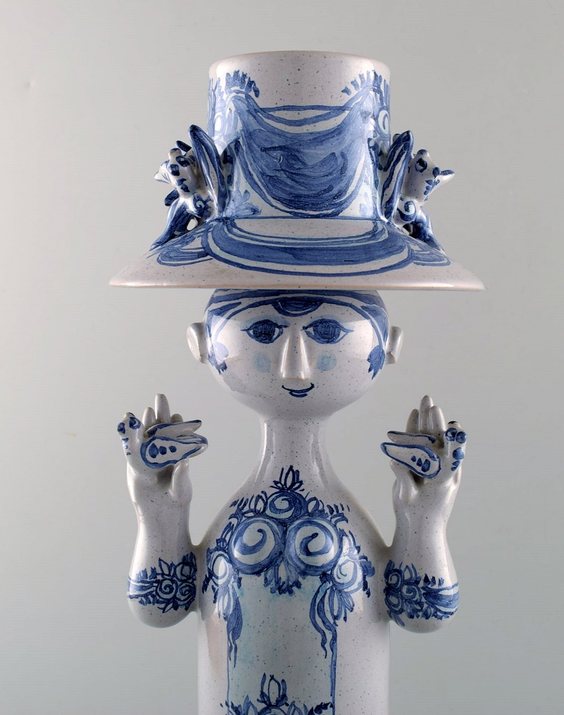 Bjørn Wiinblad ceramics, blue lady with two birds. Decoration number M35. From 2003. Height 39 cm. Diameter 15 cm. In perfect condition.