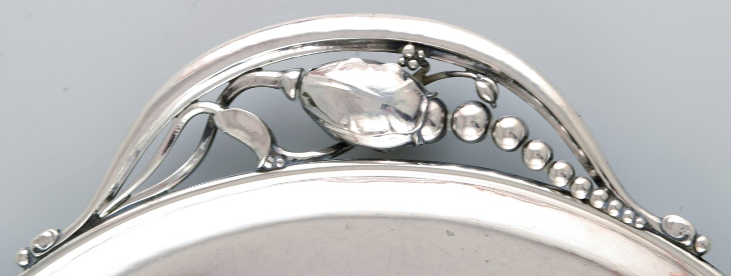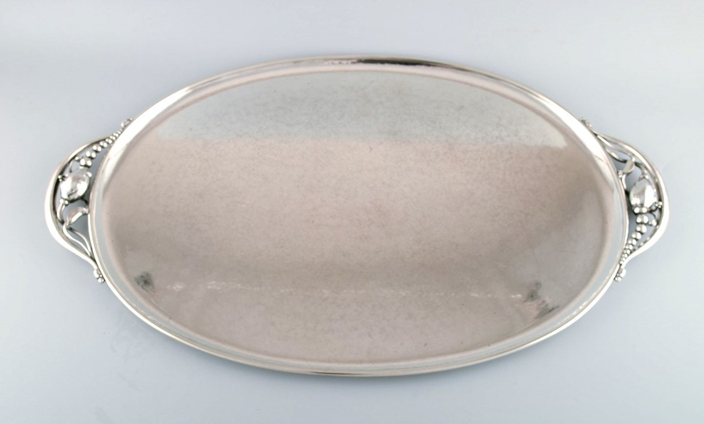 Georg Jensen Sterlingsølv Magnolia meget stor og sjælden serveringsbakke nummer 2S. Måler 64,5 cm x 40 cm. I flot stand.