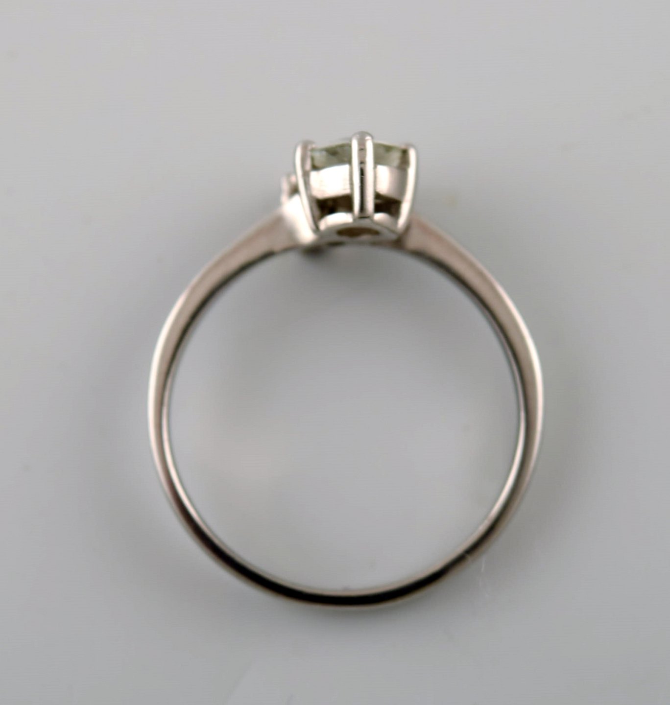 Vintage ring af 14 kt. hvidguld. Utydeligt stemplet, målt til 14 karat, ca. 1930´erne. Måler : 17 mm. I de fleste tilfælde kan vi mod et gebyr (kr. 300) pr ring, få ændret størrelsen. I god stand.