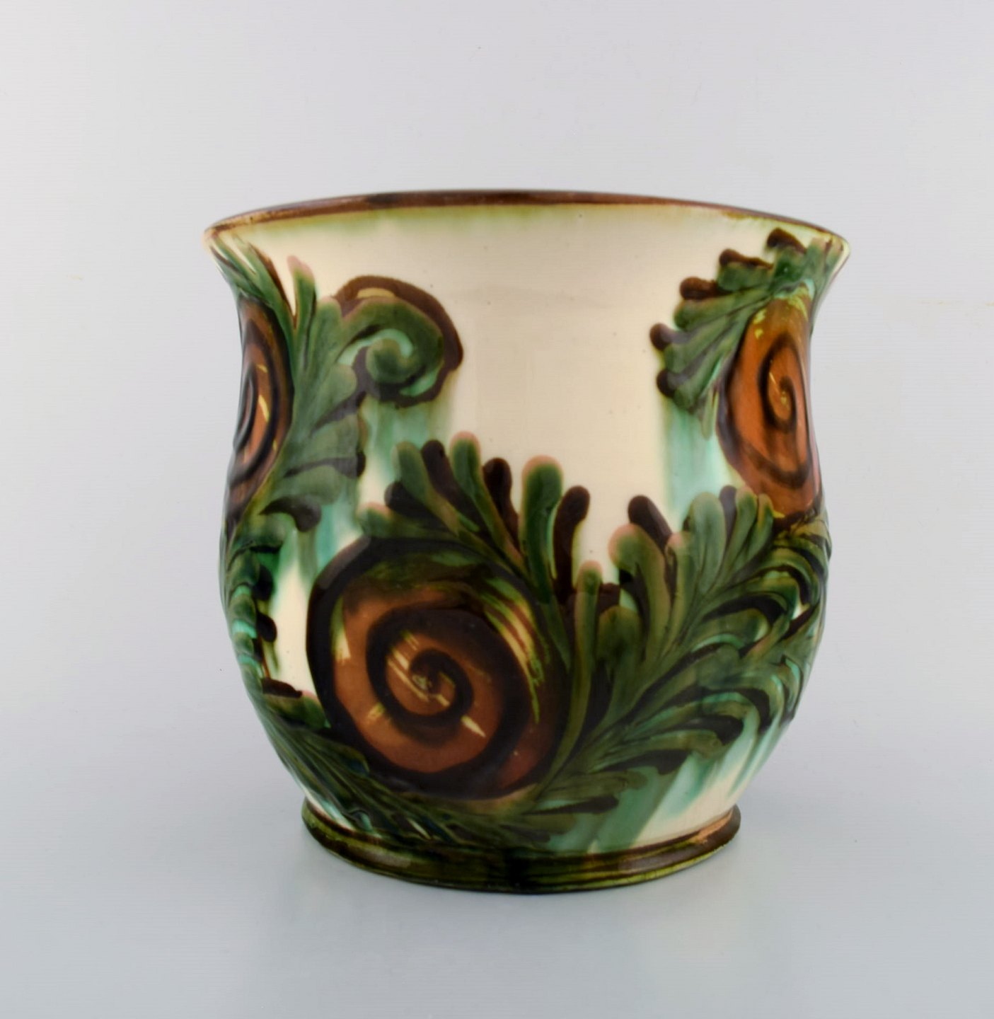 Kähler, HAK, glaseret stor stentøjsvase/urtepotteskjuler. 1920´erne. Flot kohornsglasur. Stemplet. Måler : 20,5 x 18,5 cm. I perfekt stand.