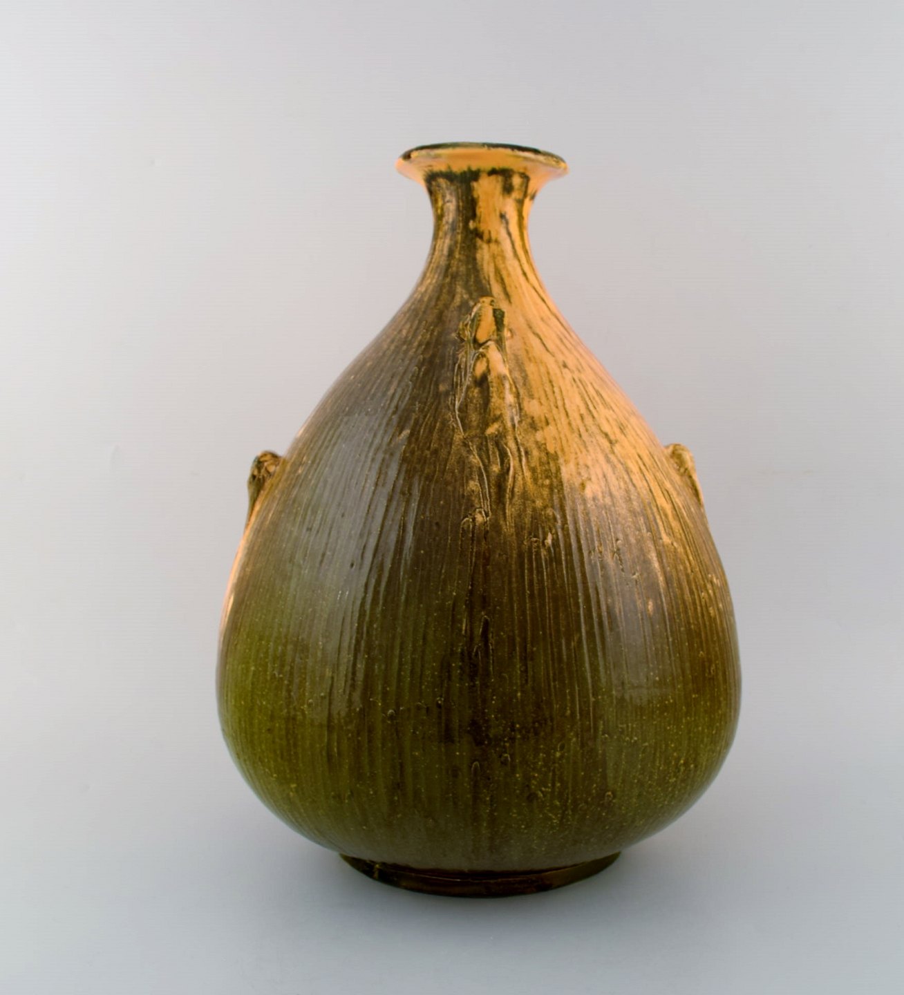 Large Kähler, Denmark, Svend Hammershøi, glazed vase in stoneware. In perfect condition. Beautiful uranium yellow glaze. Stamped. Measures 39 x 30 cm.